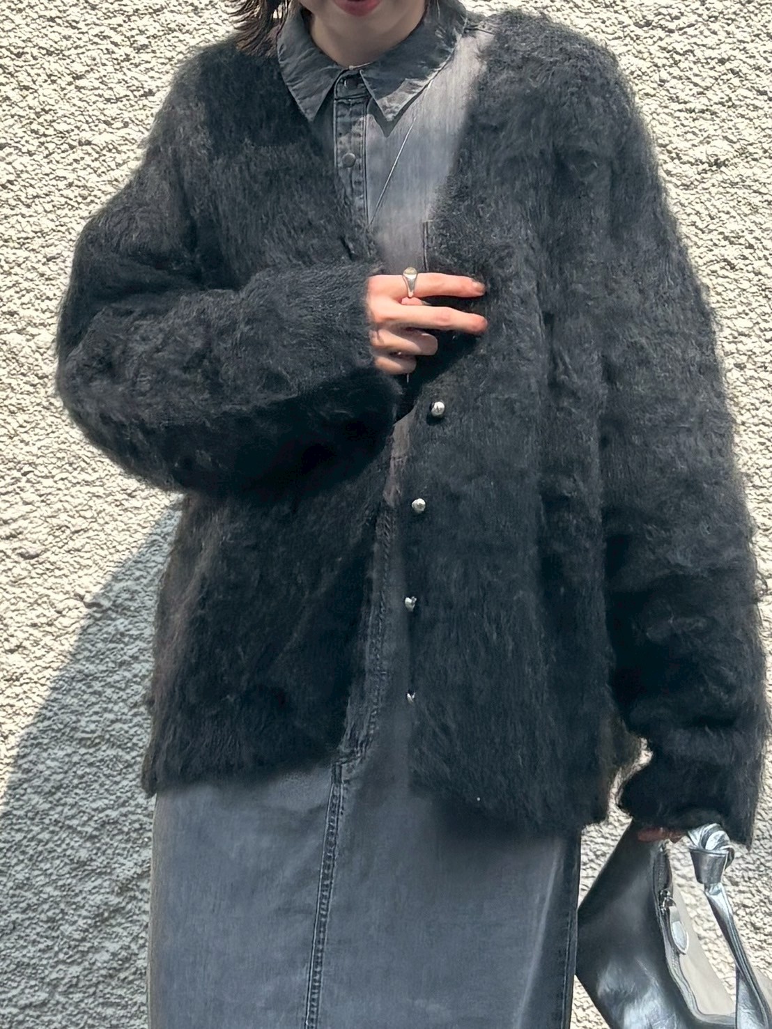 ROSIEE 25winterご予約 フラッシュ加工起毛Knitカーディガン R791229 納期11月下旬