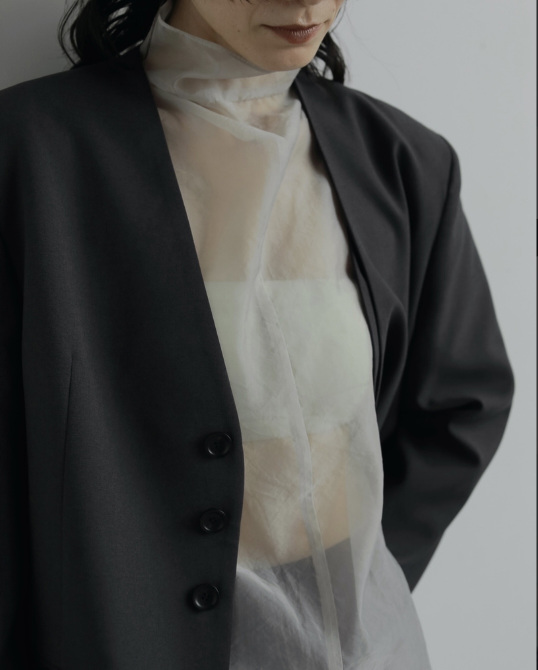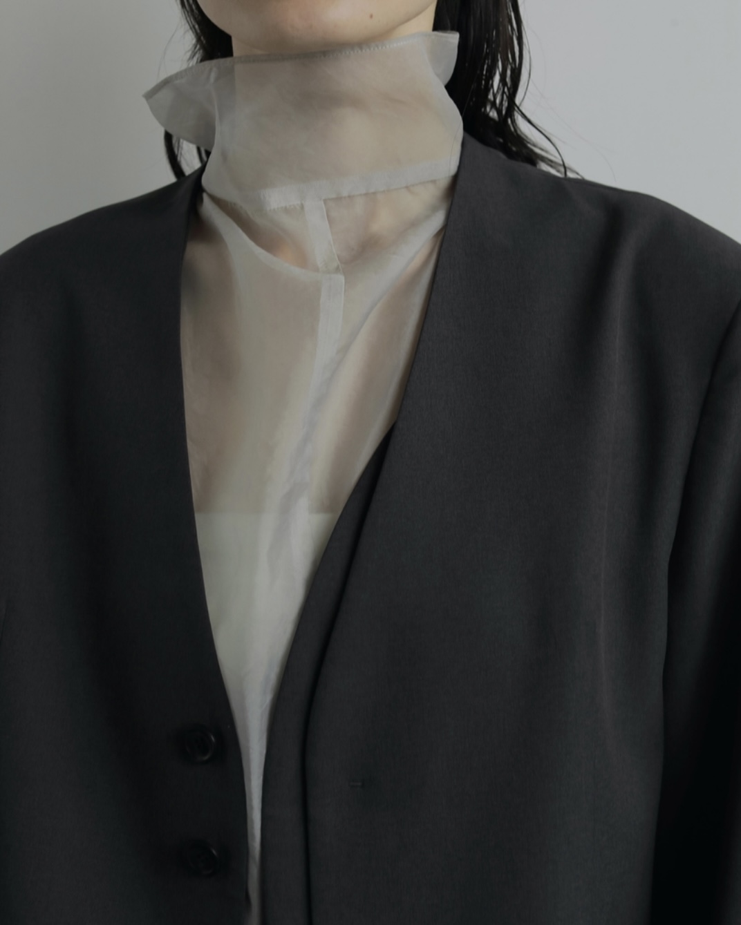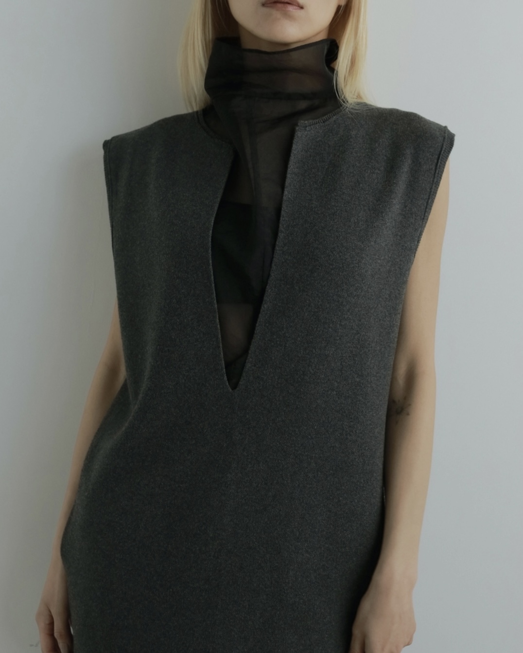 ジャケットのインナーとして合わせたり、ニットと合わせたり、重たくなりがちな秋冬のスタイリングに抜け感をプラスしてくれます。