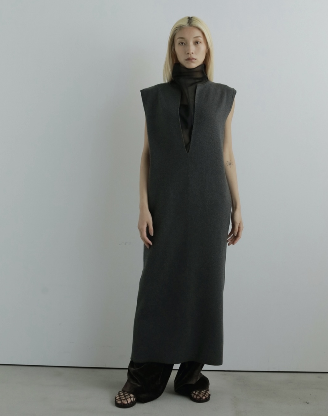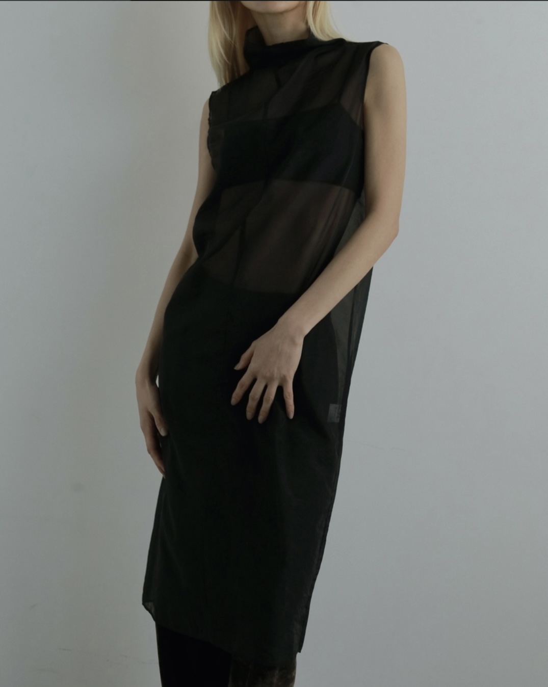 上品な透け感ある素材とタートルデザインで、大人っぽく着ていただけるロングワンピース。