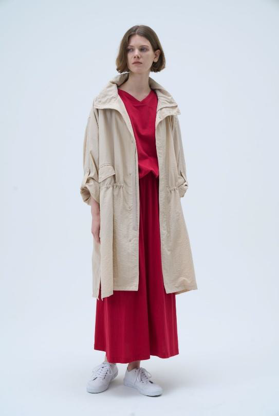 裾はロック始末にすることで抜けもプラスされ同素材のスカートを合わせたセットアップスタイルもおすすめです。