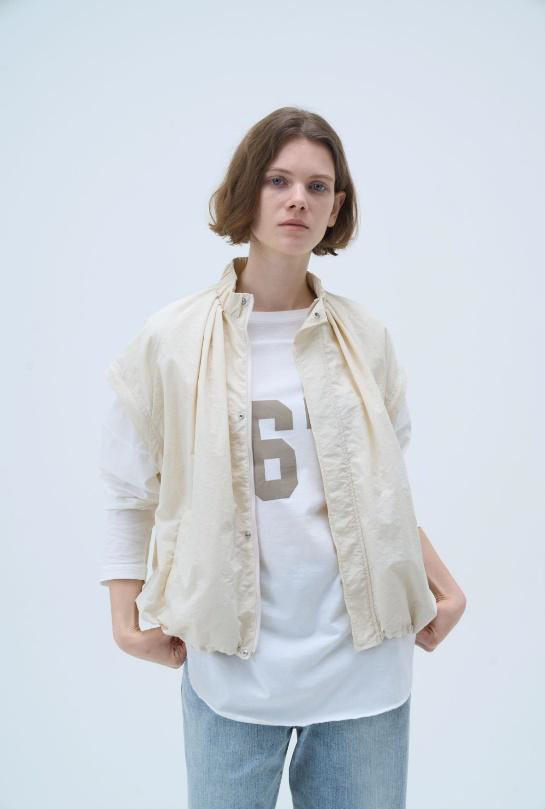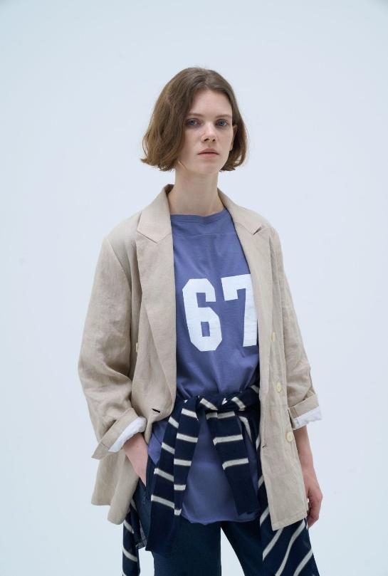 裾はロック始末にすることで抜けもプラスされ、同素材のスカートを合わせたセットアップスタイルもおすすめです。