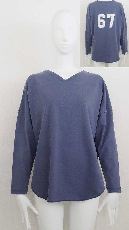 フットボールTシャツを女性らしいサイジングにアレンジした、前後2wayで着用いただけるVネックトップスです。