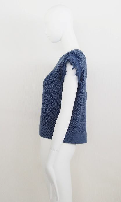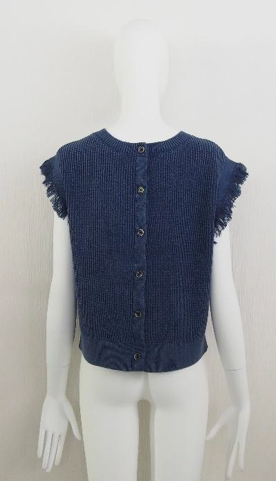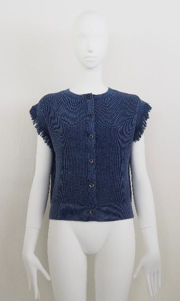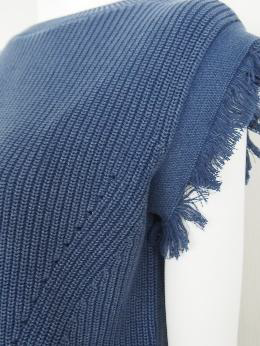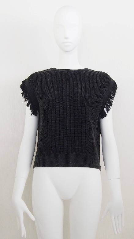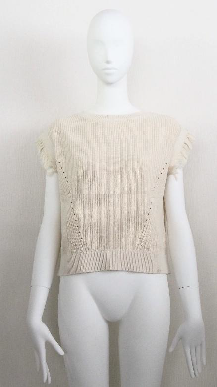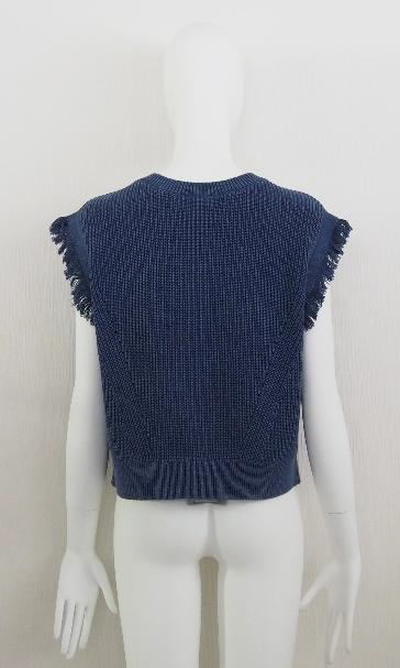 袖口のフリンジがさりげないアクセントになった、ショート丈のローゲージニットベストです。