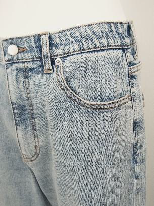 膝から裾にかけてほぼ同じ幅で落ちるストレートシルエットのデニムパンツ。