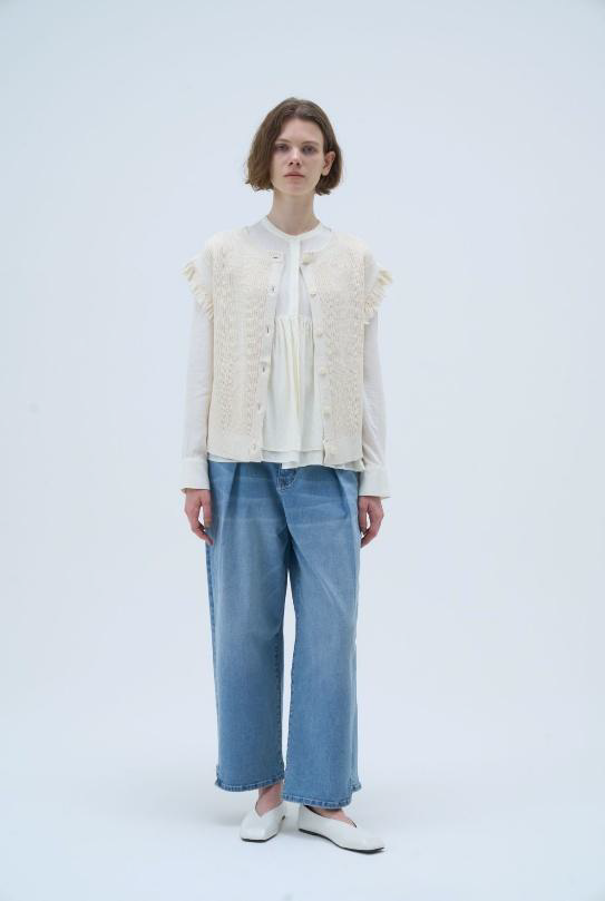 デニム特有のカジュアルさに、タックによる立体感をプラスし、こなれた印象に仕上げました。