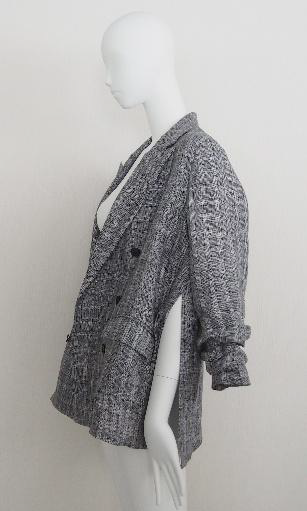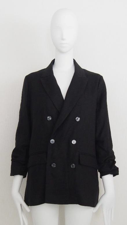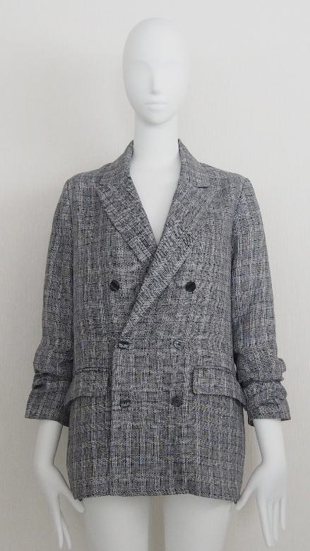 ボクシーで抜け感のあるシルエットのピークドラペルのダブルブレストジャケット。