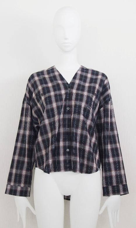 ordinary26SS ご予約 Checked Collarless Wide Shirt BO26-426B 納期2月末