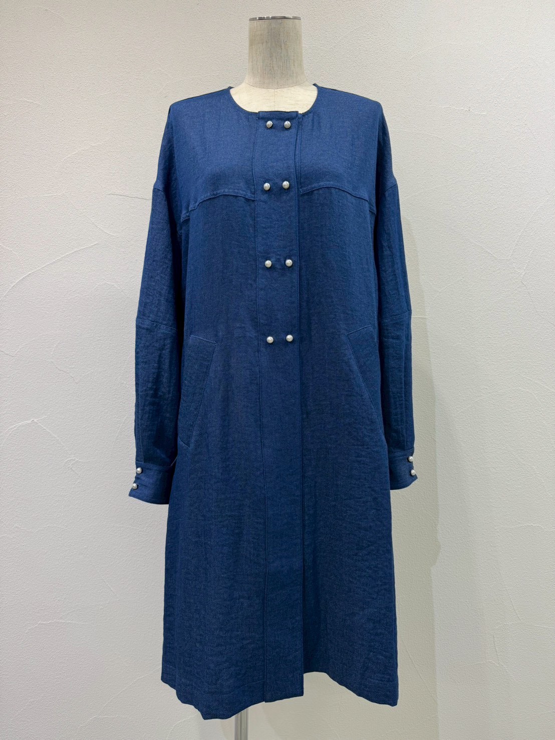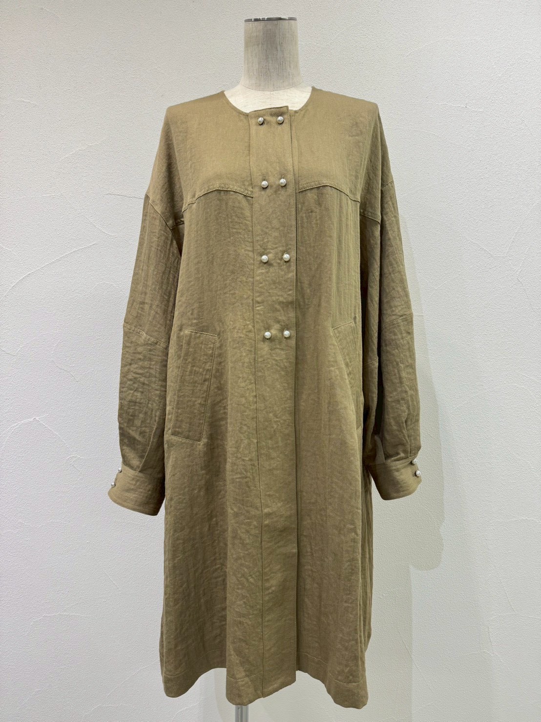 cyantokyo26SS ご予約 パールボタンミリタリーリネンコート 610428 納期2月中旬~2月下旬