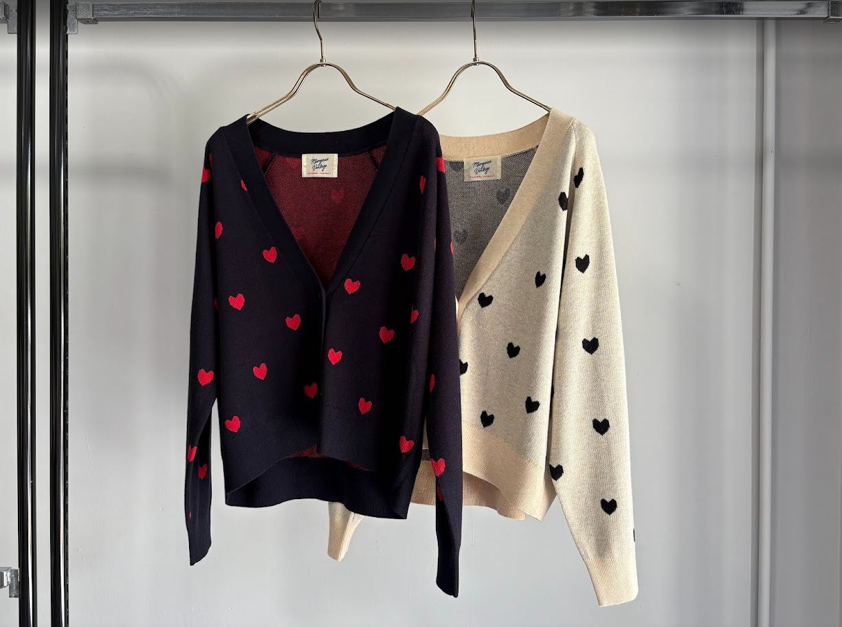 MARGAUX VINTAGE 26PS ご予約 ハート柄Vネックカーディガン MGKN-26019-S 納期1月中旬