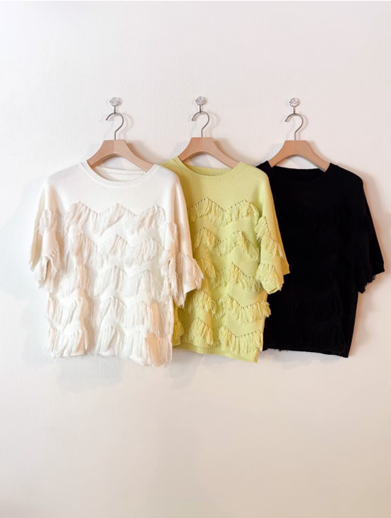 立体的なフリンジデザインが目を惹くニットTOPS。