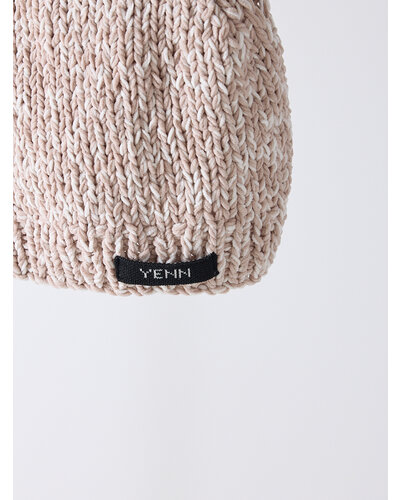 2色の糸を一緒に編んで作るMIXカラーがポイントです。太番手の糸で手編みすることで、ざっくりとした風合いのハンドメイドのようなノスタルジックな印象に仕上げました。