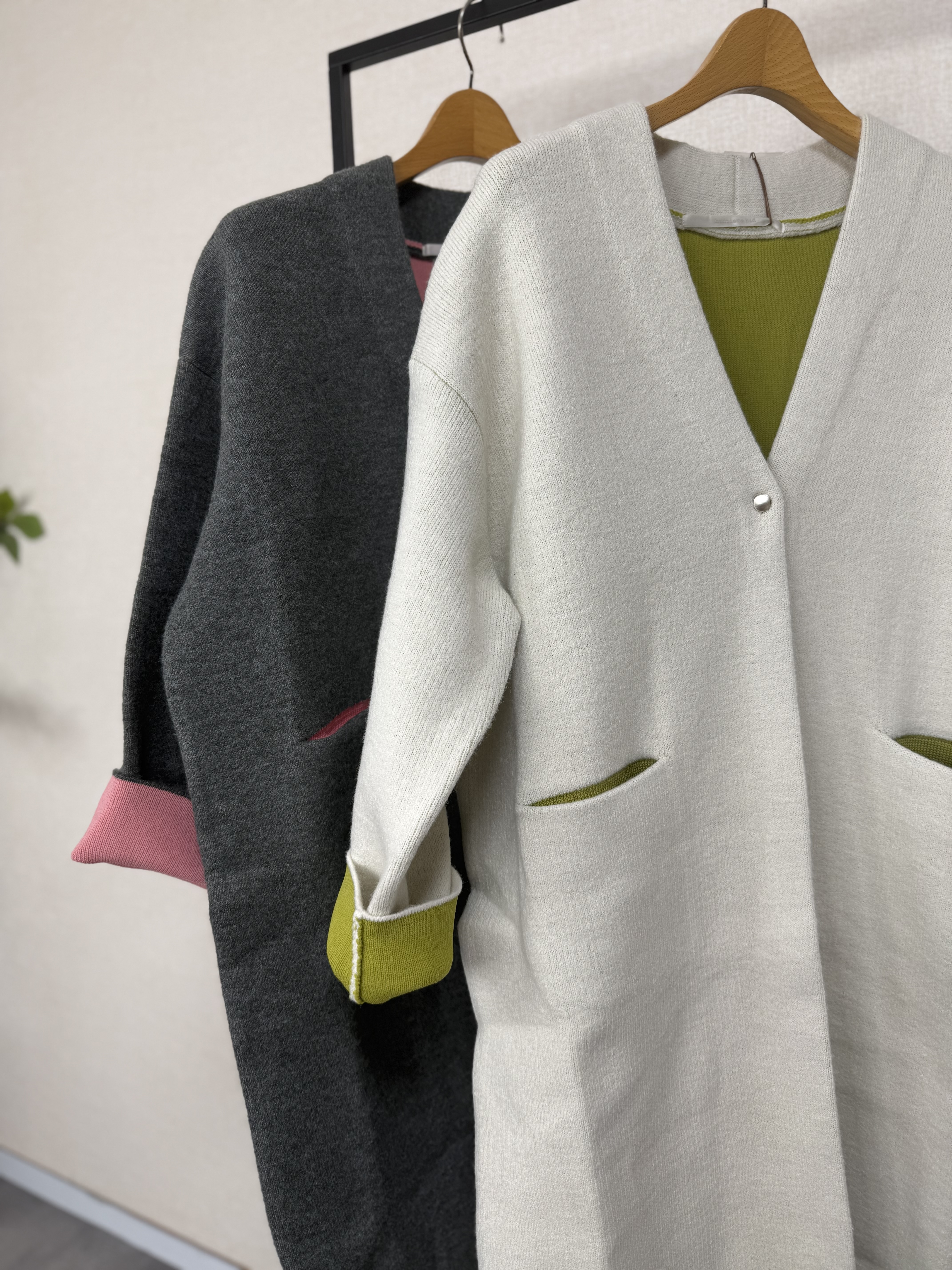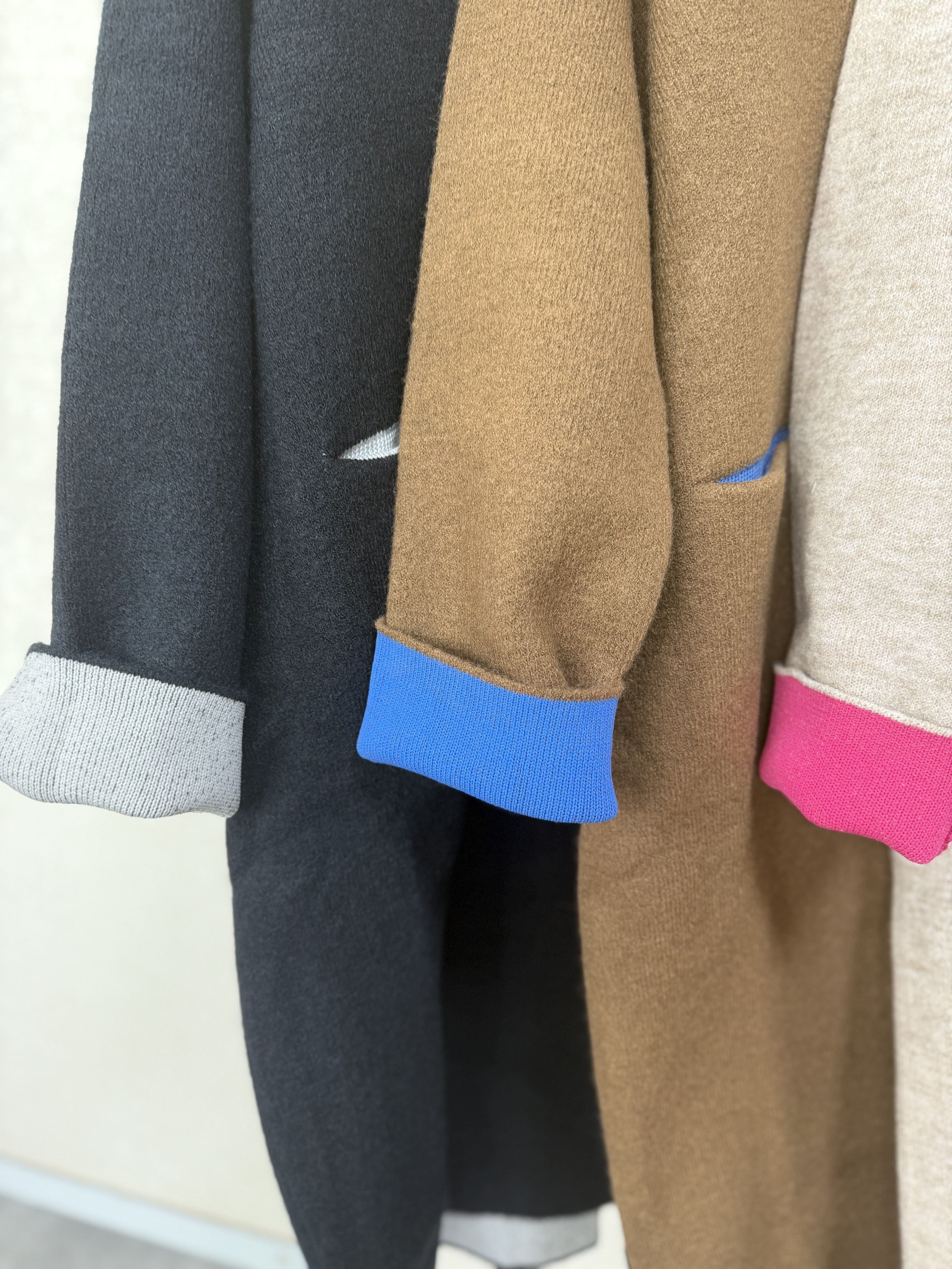 select ご予約 ブラック再販なし ダブルフェイス配色カーディガンロングチャコール 11月13日納期予定