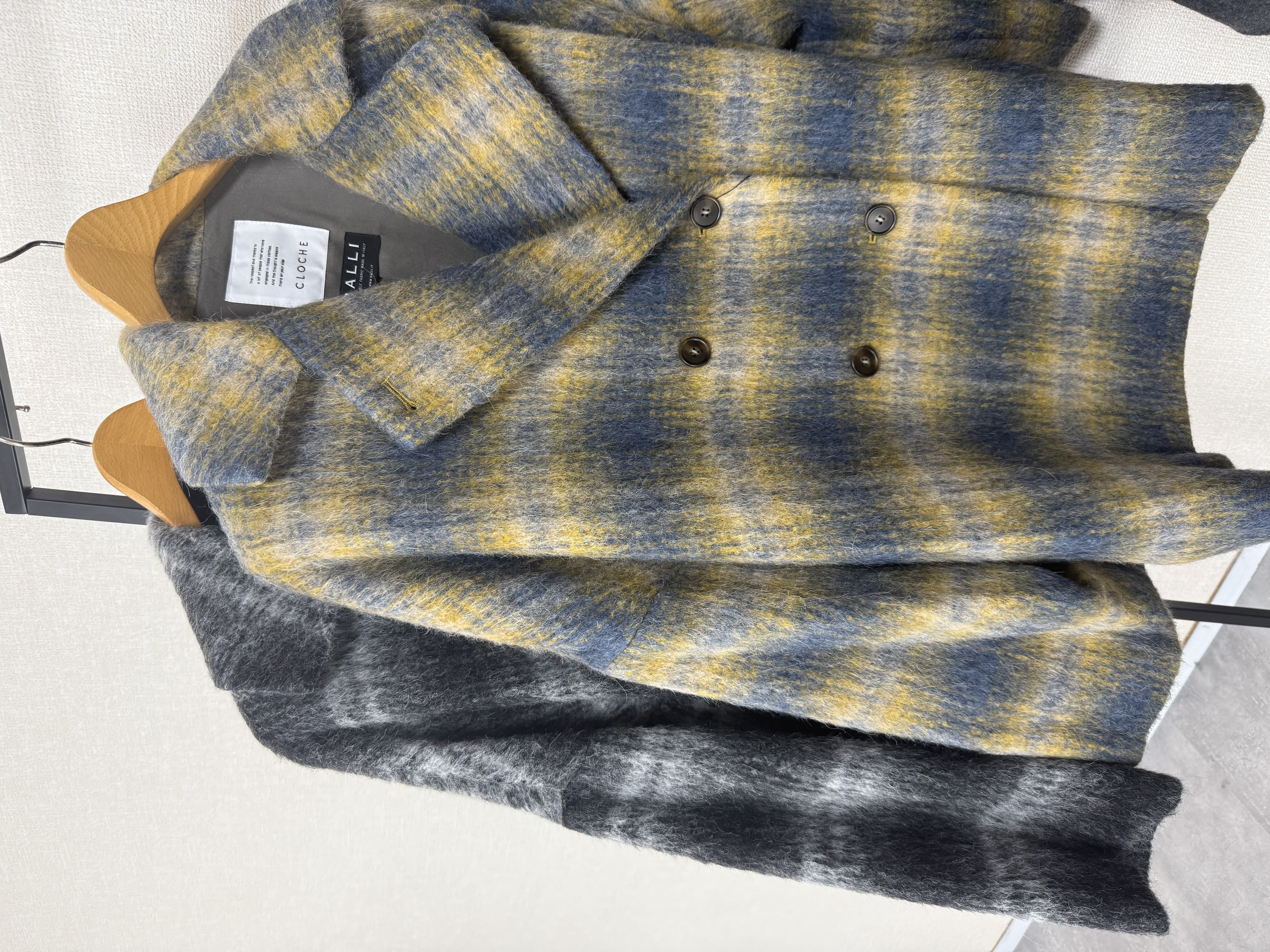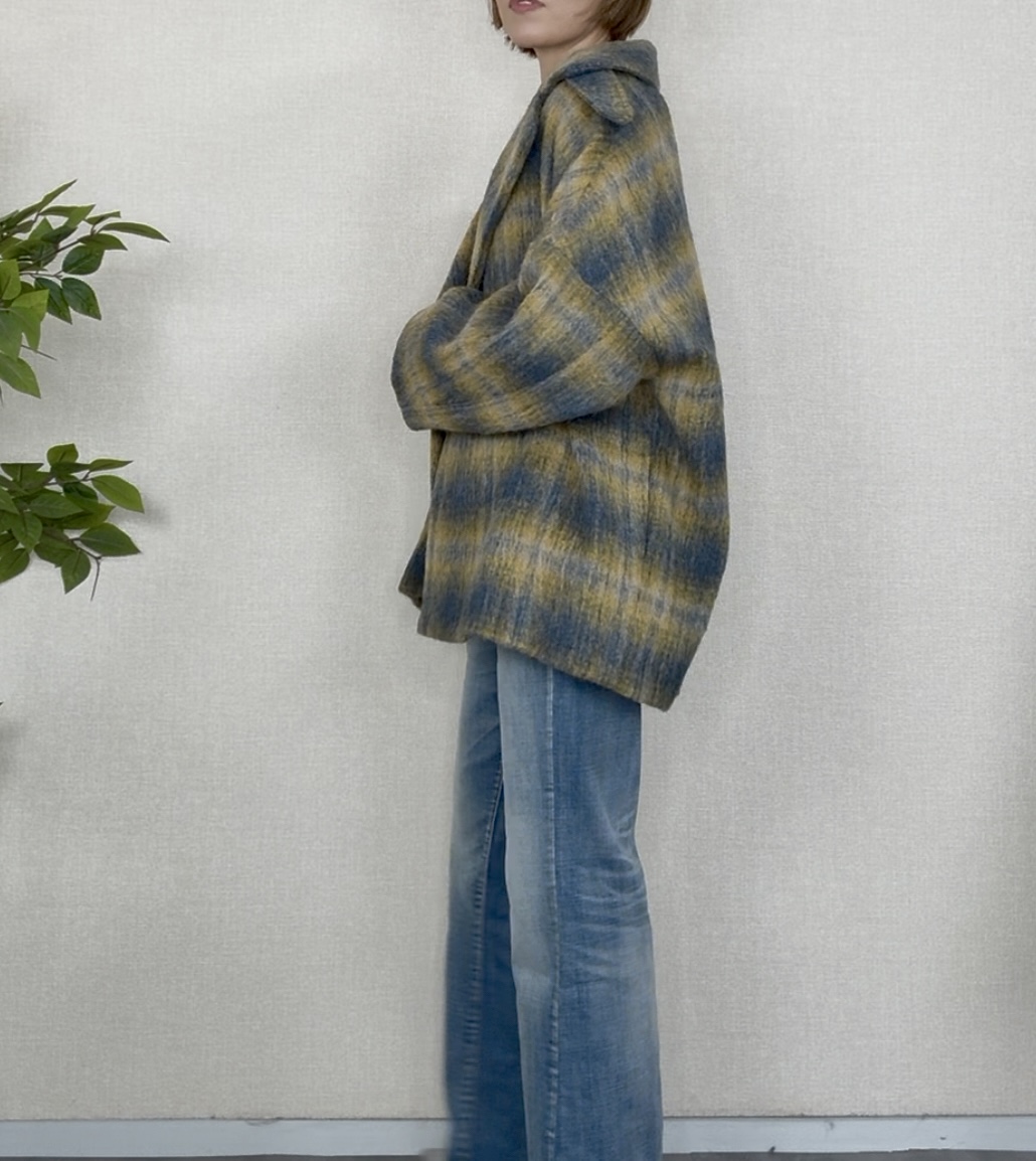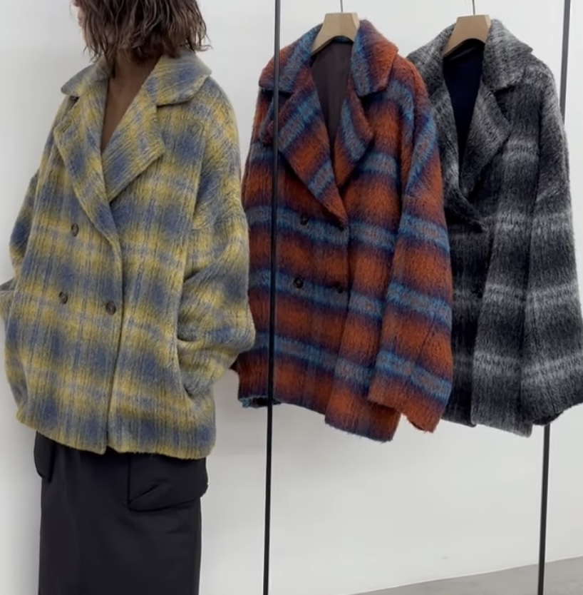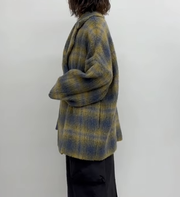outer Faire メーカー完売 ブラックラスト1点イタリアPRATO生地使用シャギーチェックコート 84002