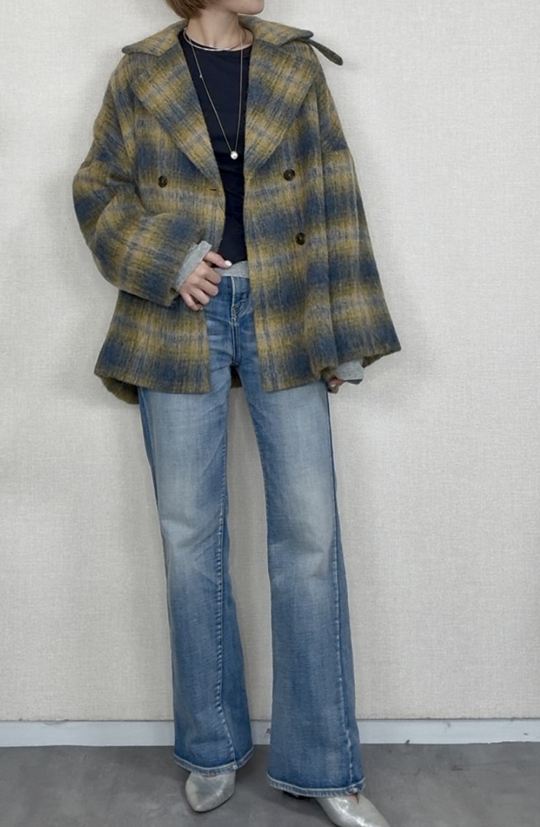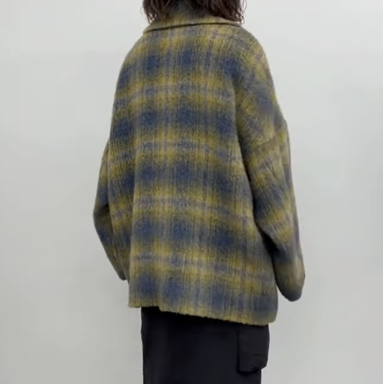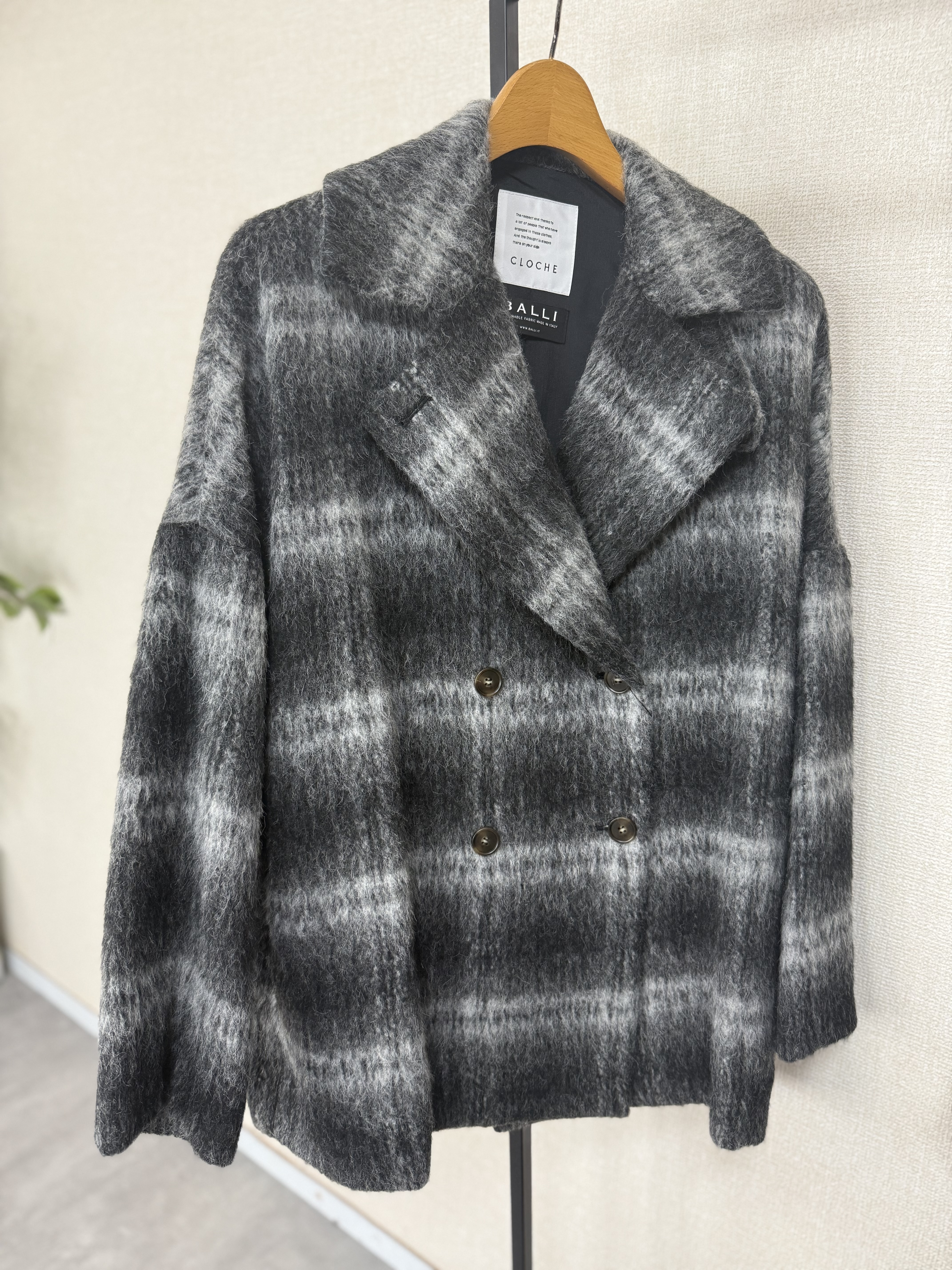 outer Faire メーカー完売 ブラックラスト1点イタリアPRATO生地使用シャギーチェックコート 84002