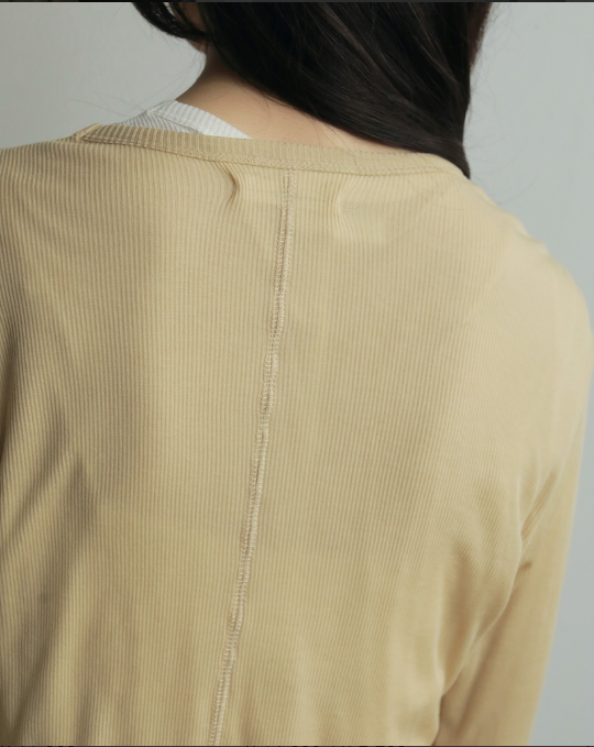 薄手の透け感あるリブ素材を使用したロングTシャツ。