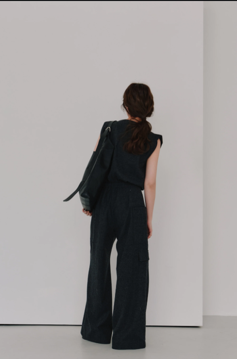 パンツのシルエットやポケットのディテールがこなれ感をプラス。