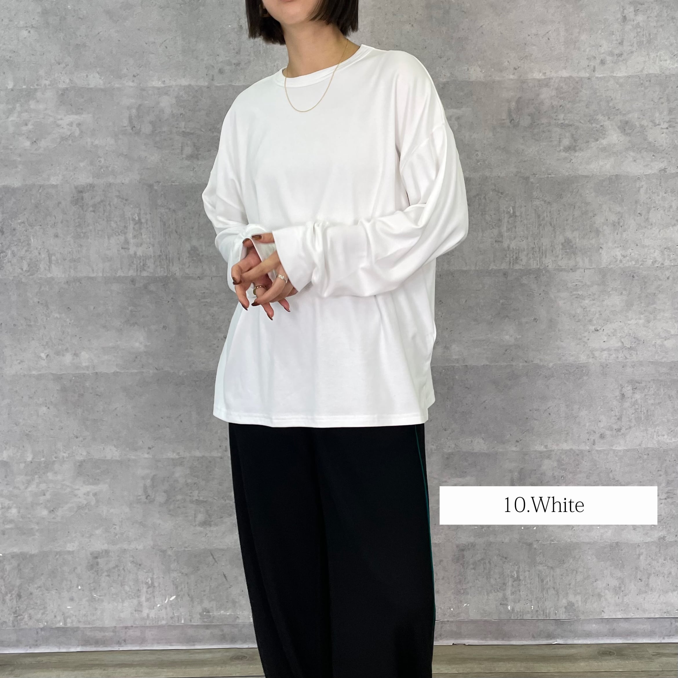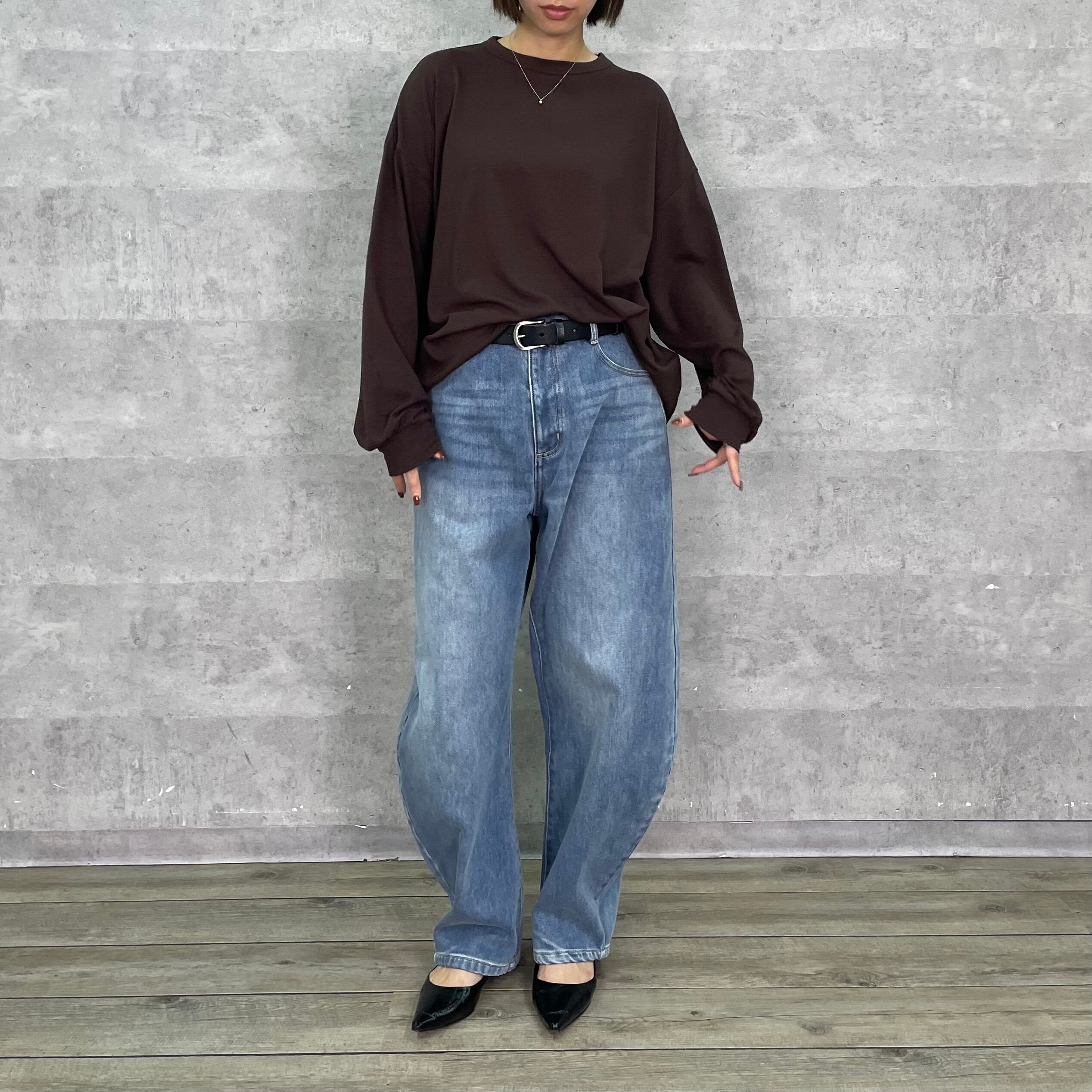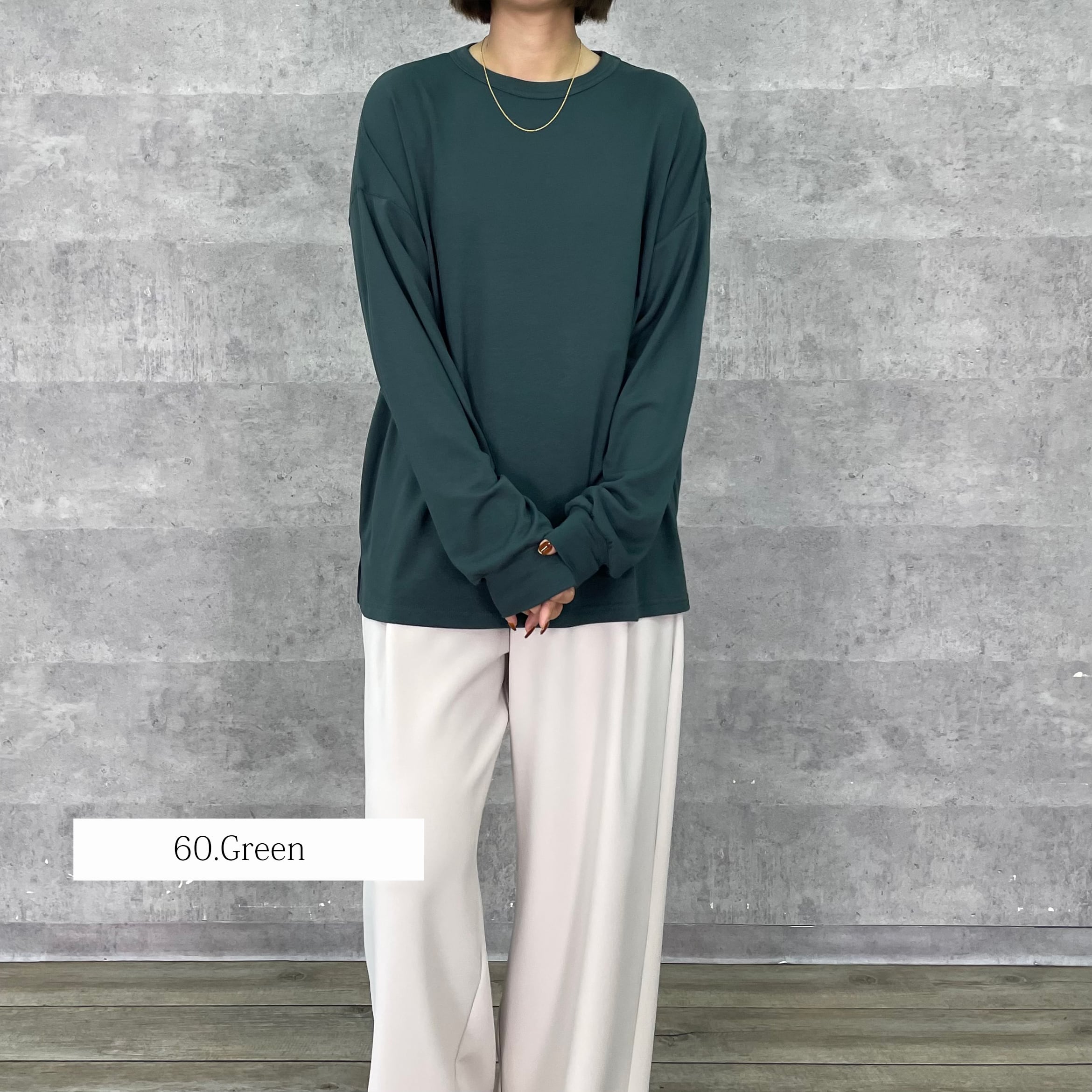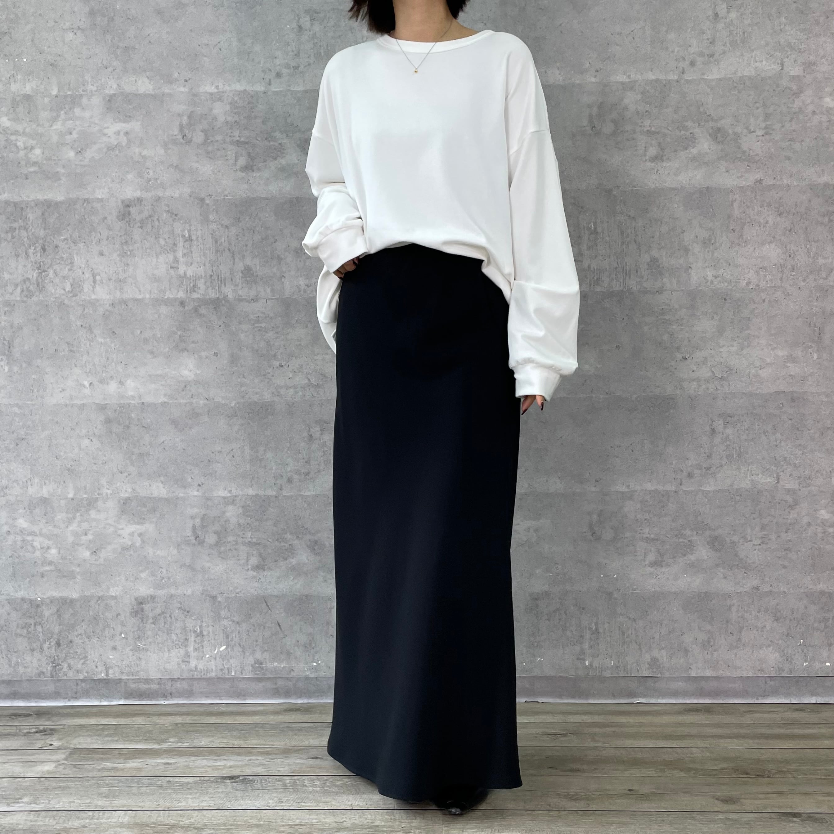 女性が着るとたっぷりとした分量感で体が泳ぐ絶妙なサイズ感が華奢見えします。