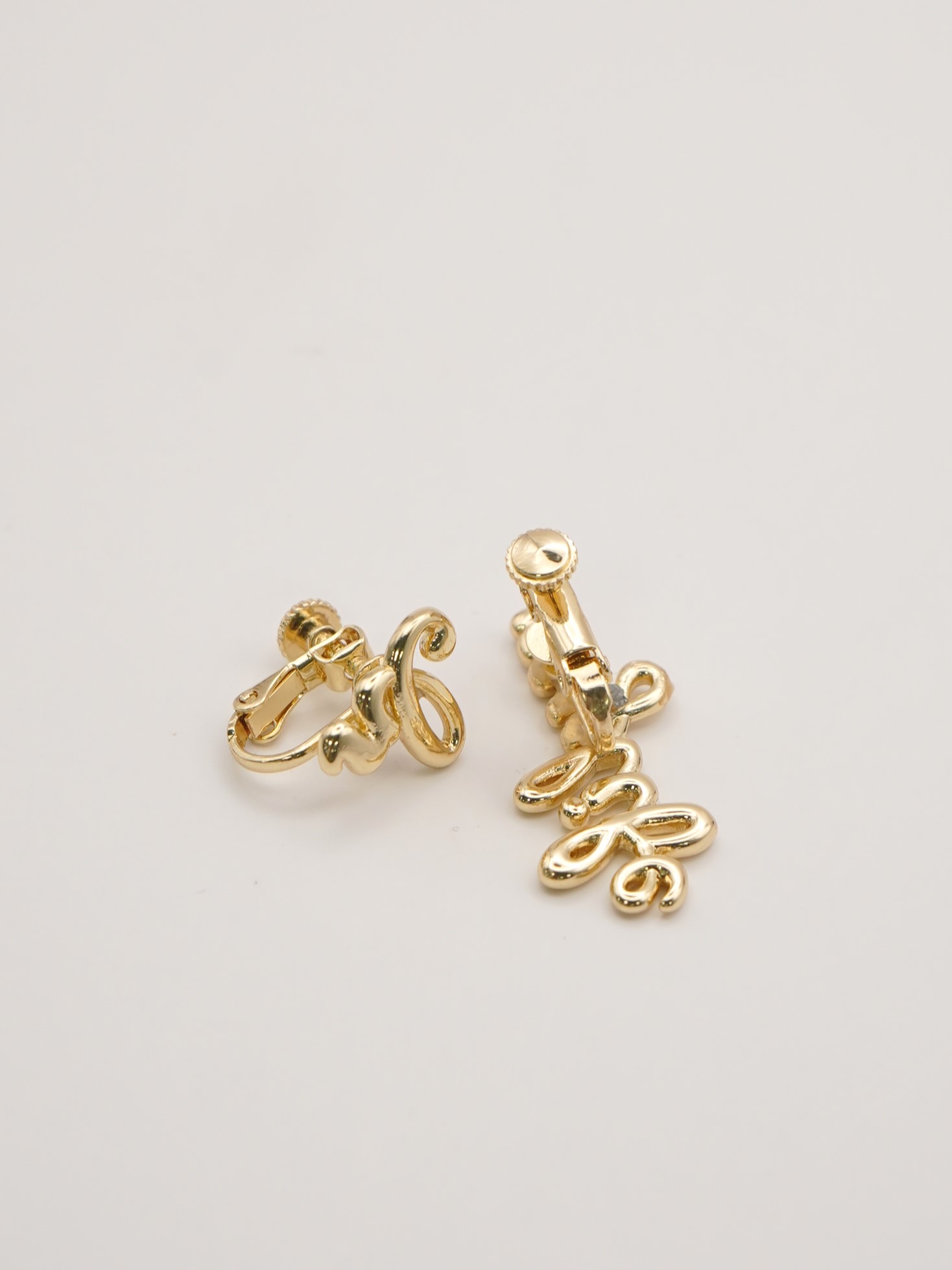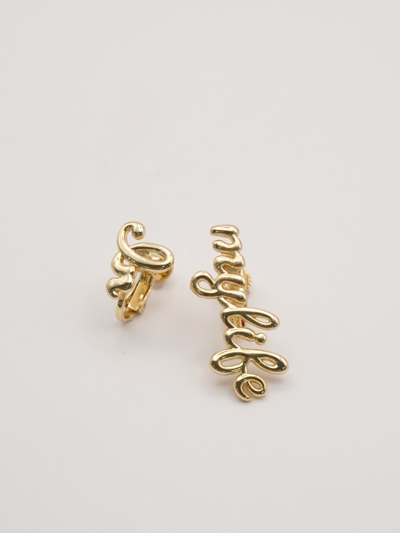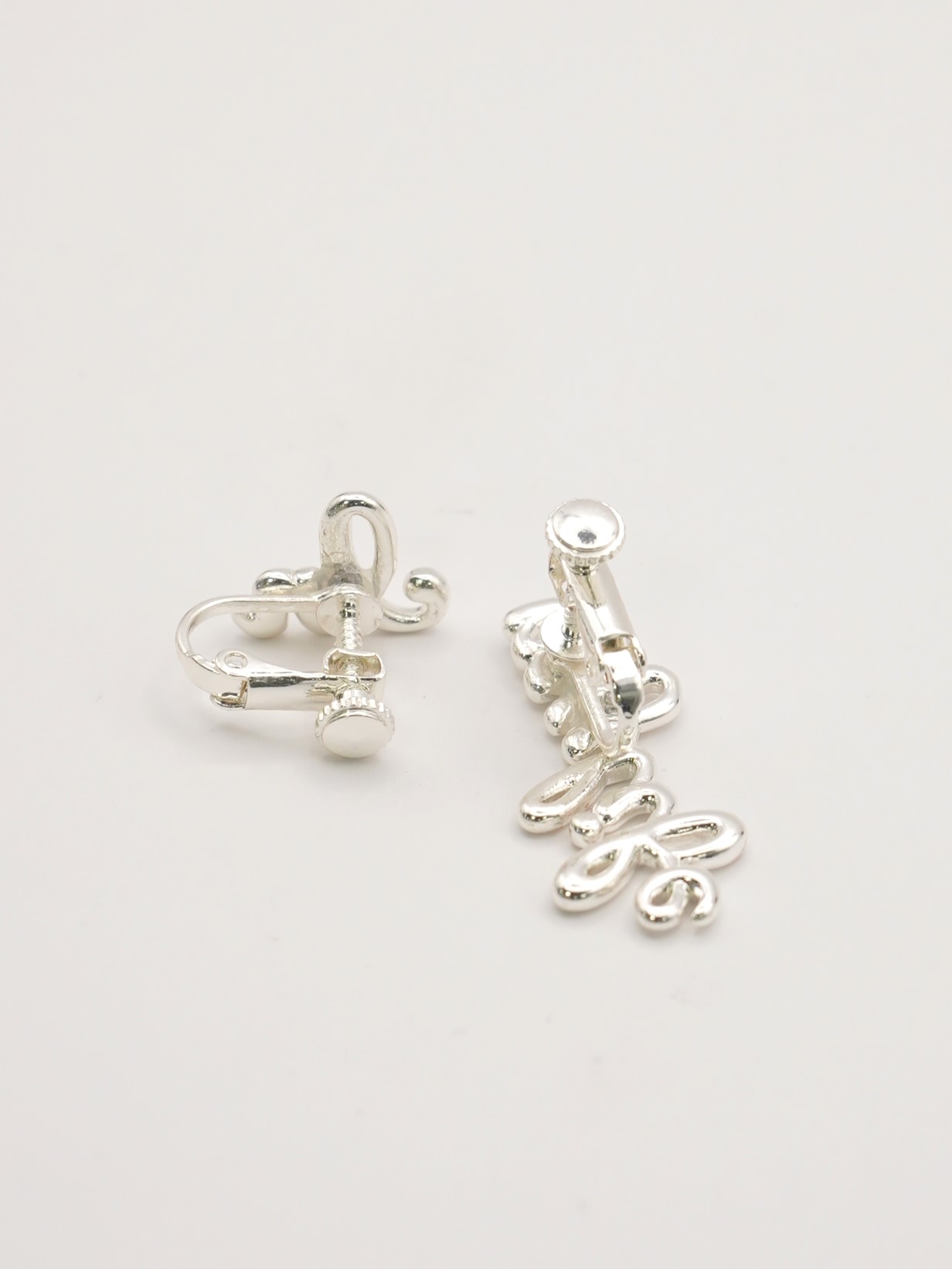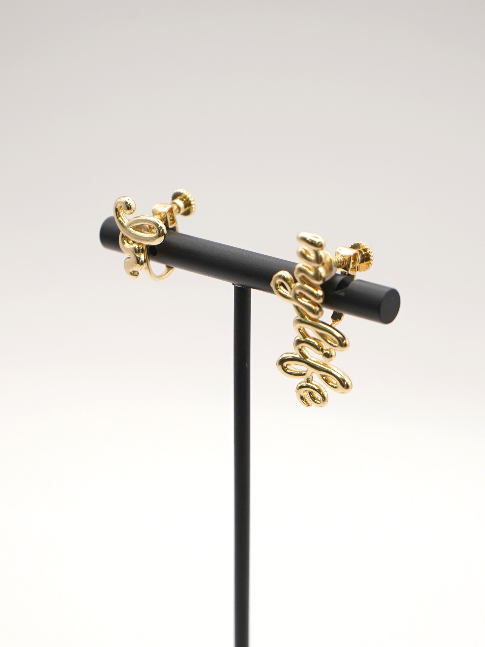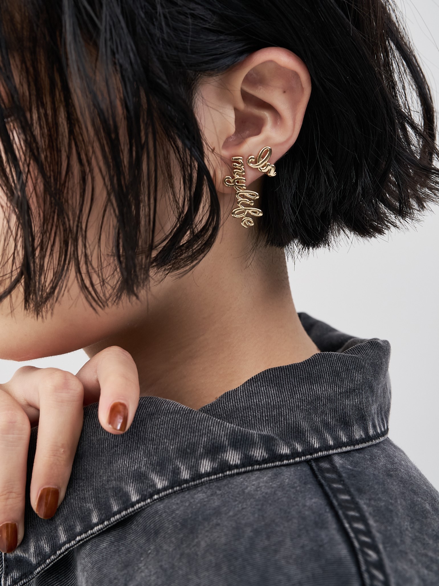 「In」「MyLife」のロゴモチーフの組み合わせが目を引くアシメイヤリングは、ぷっくりとした筆記体で女性らしく仕上げました。