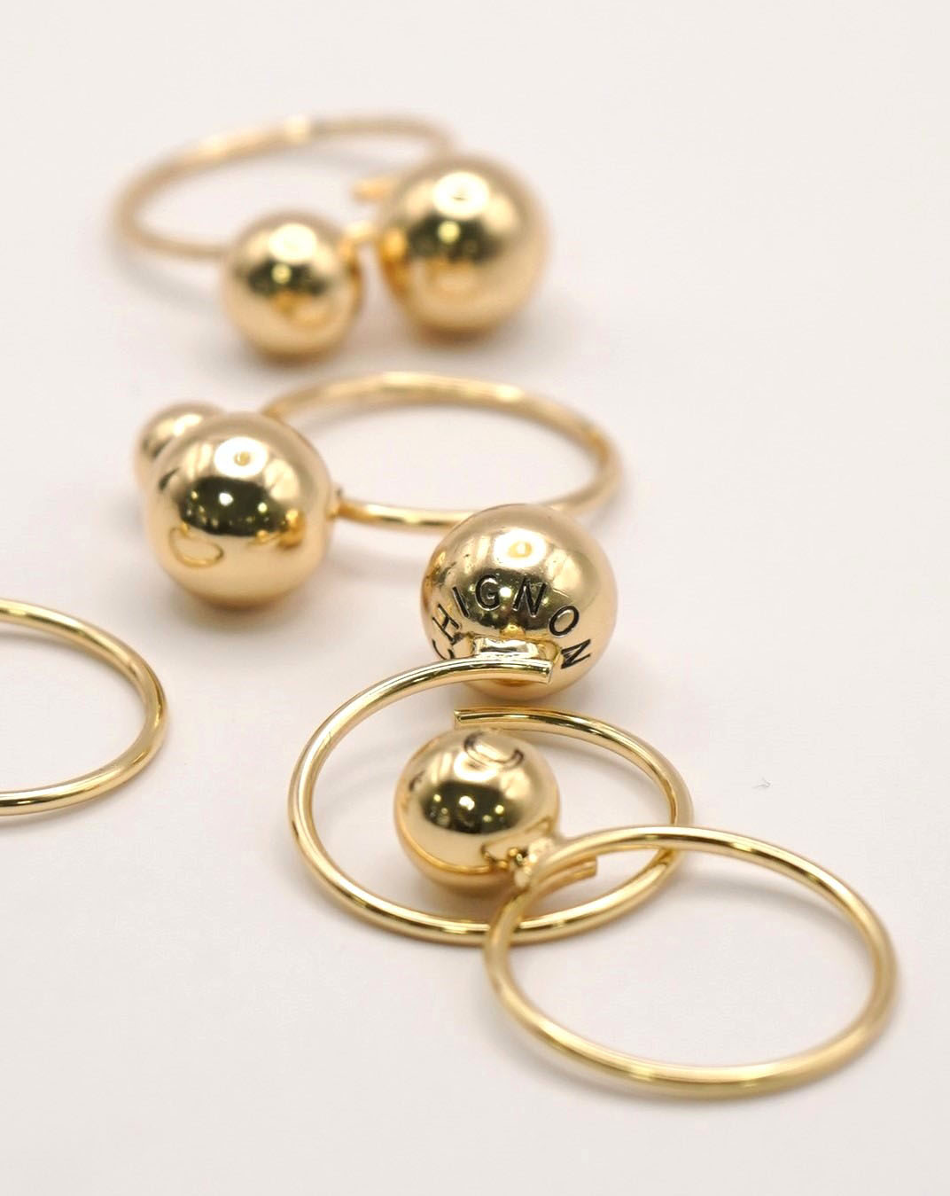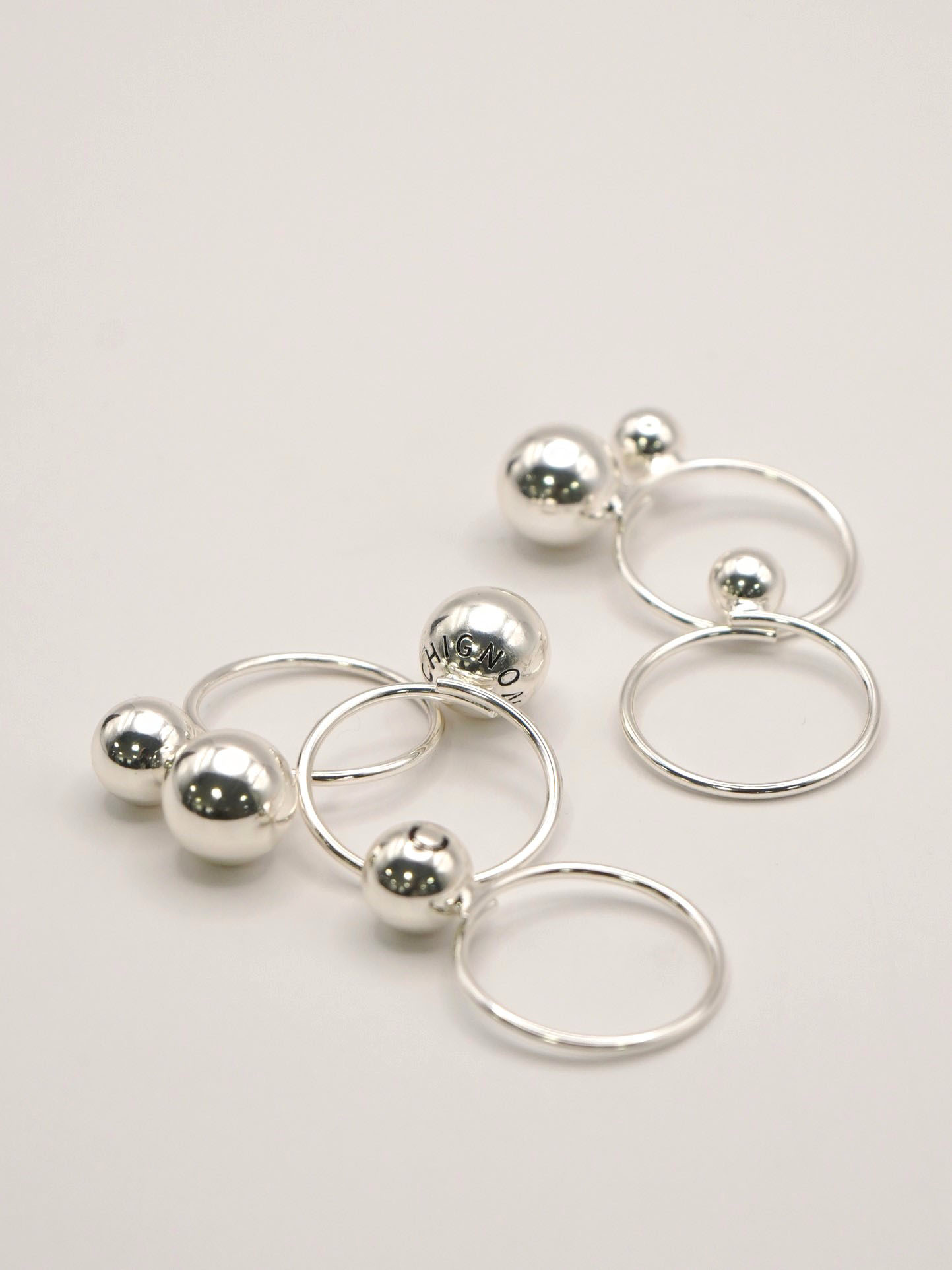 1粒大リングには「CHIGNON」、1粒中リングには「C」の黒文字刻印を入れているので、ちらっと見えるロゴが遊び心をくすぐるオリジナルアイテムとなっております。