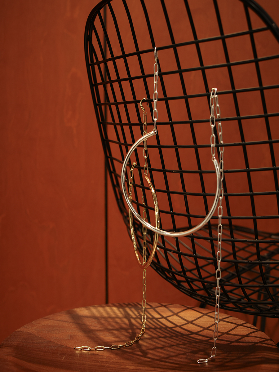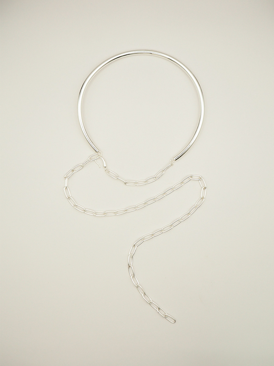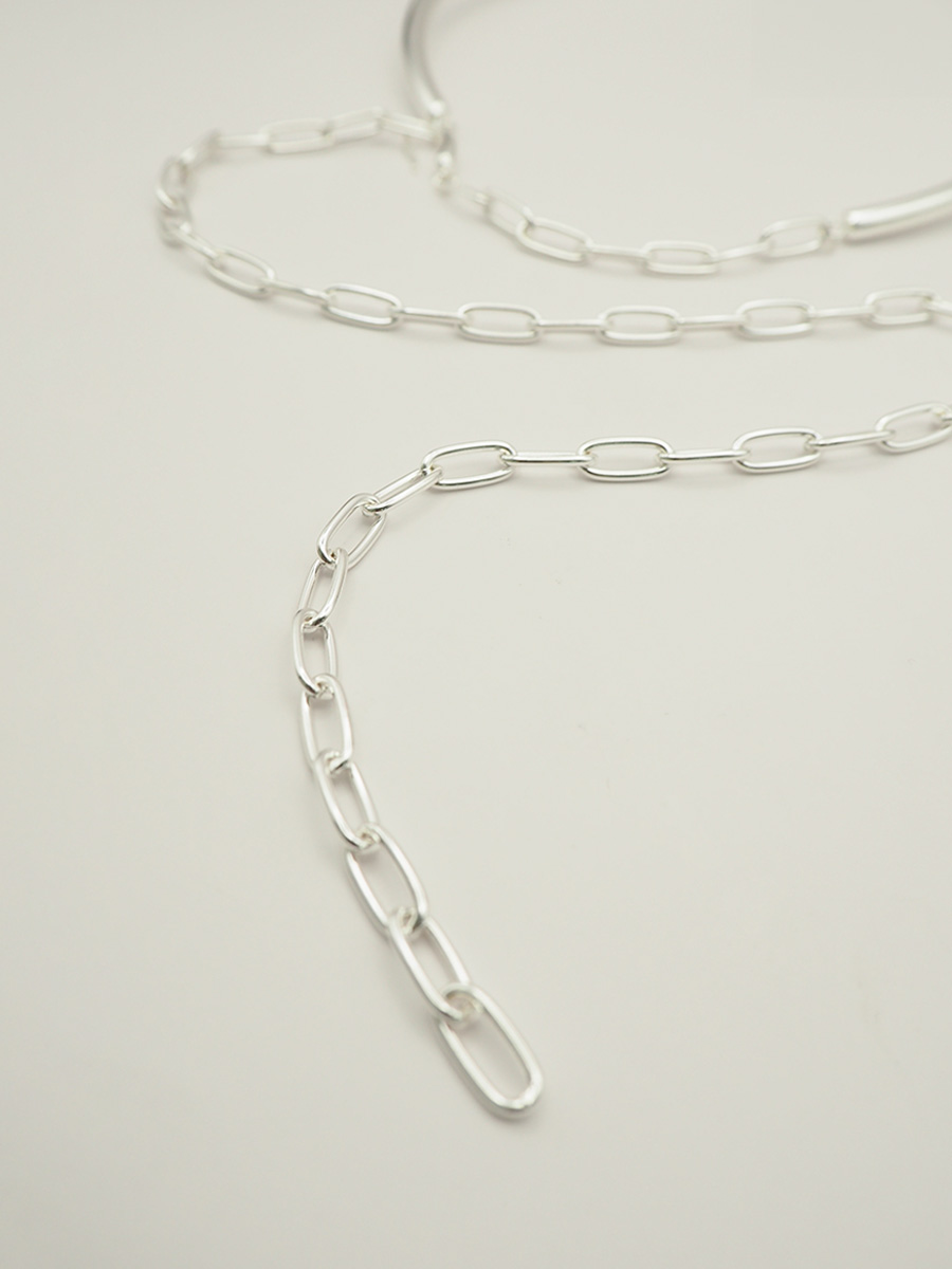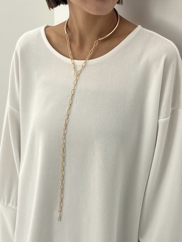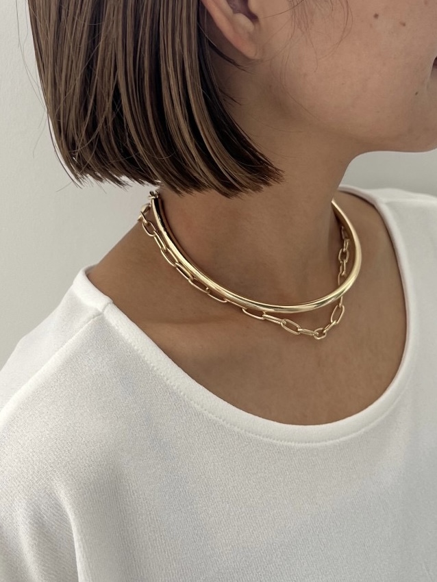 マルチWAYメタルチョーカーは、シンプルなメタルチョーカーとオーバルチェーンネックレスの組み合わせで様々なスタリングを楽しめます。