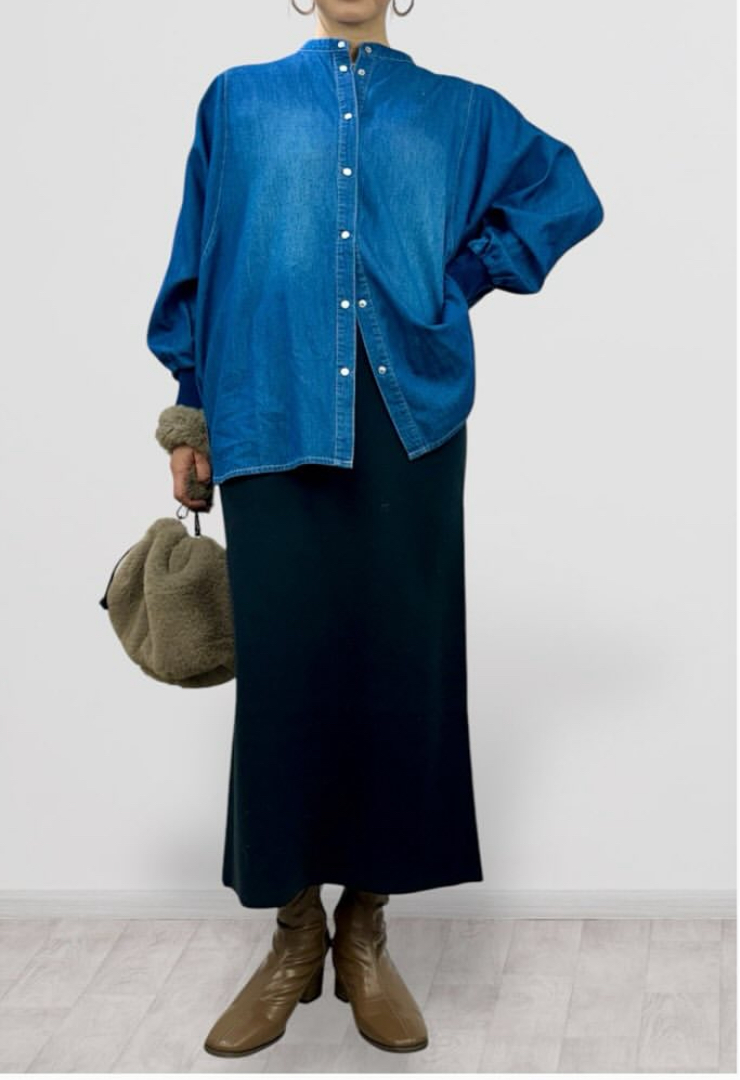 再販 インディゴラスト1点 ドルマンデニムシャツ 503