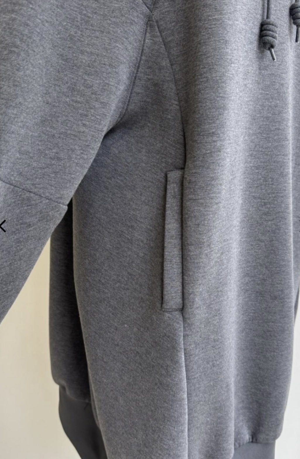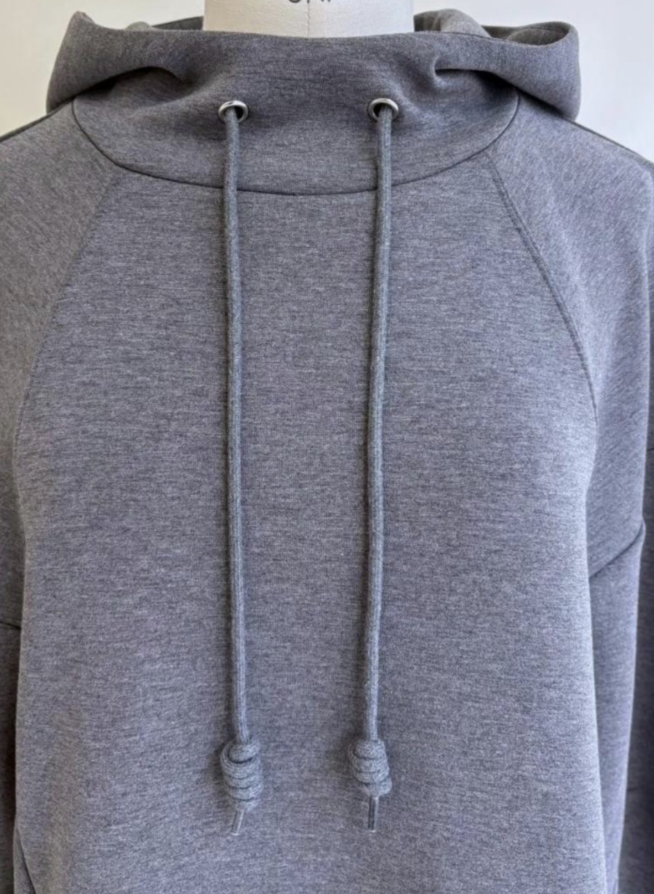 袖リブの切り替えが全体を引き締め、リラクシーながらもきちんと見えするバランスに。
