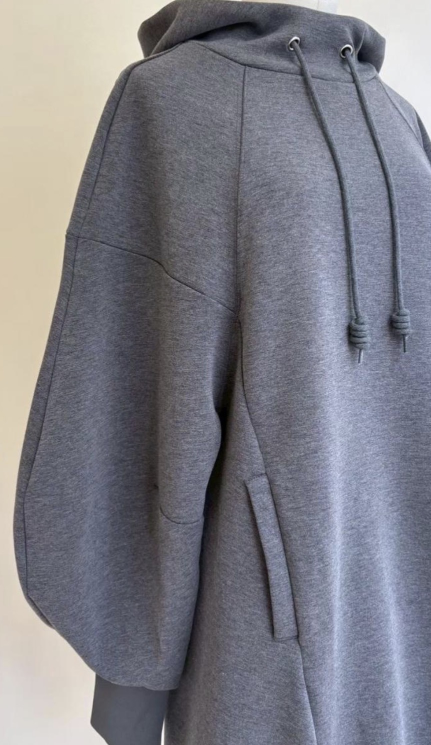 ふんわりボリュームのあるお袖とヒップまで隠れるチュニック丈で気になるラインもカバー。