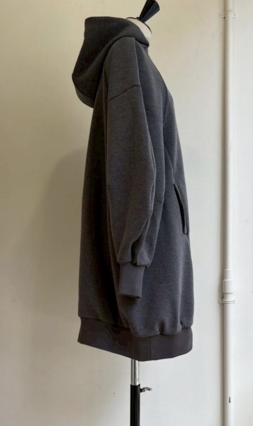 袖リブの切り替えが全体を引き締め、リラクシーながらもきちんと見えするバランスに。