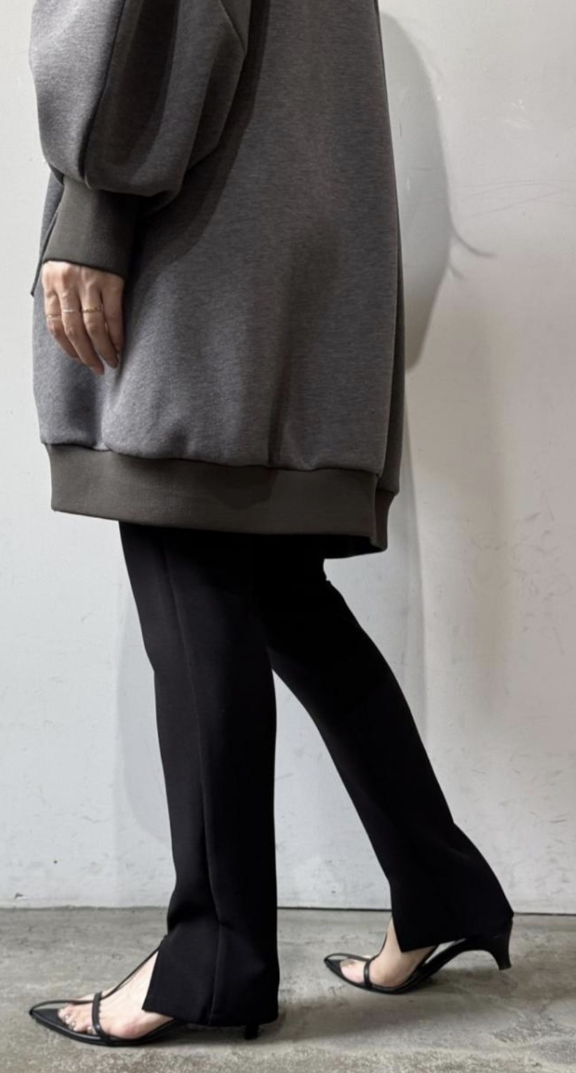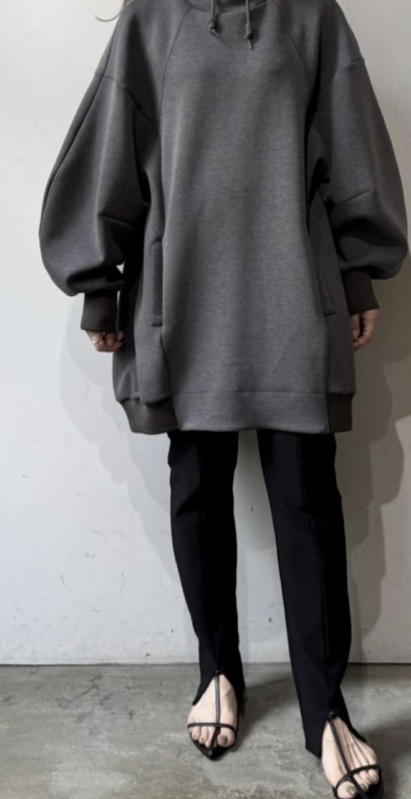 ふんわりボリュームのあるお袖とヒップまで隠れるチュニック丈で気になるラインもカバー。