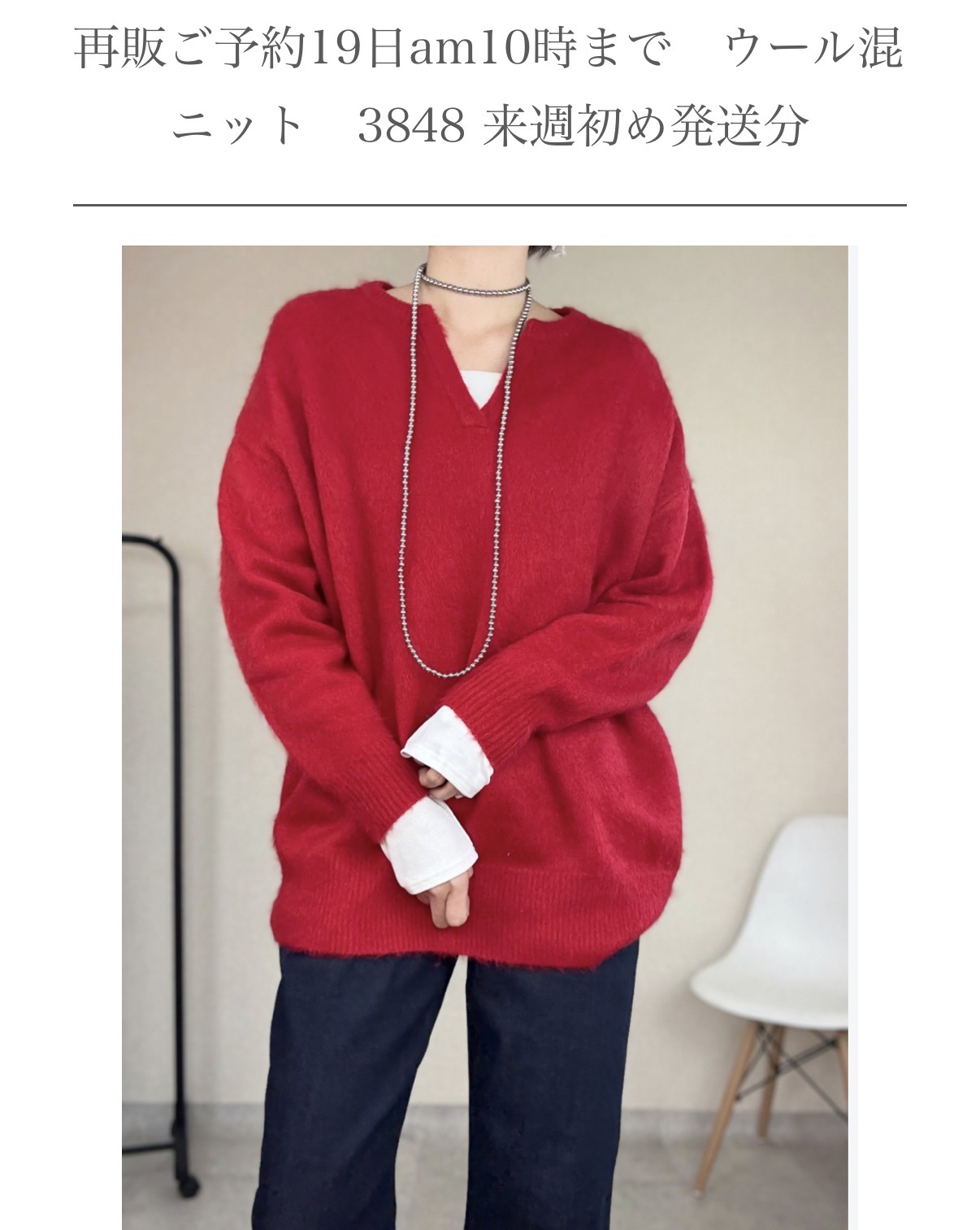 ウール混ニット 3848 来週発送分 レッド ¥8400+税