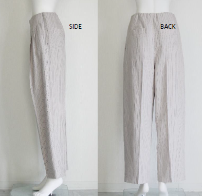 前ウエストはすっきりと仕立てつつ、後ろウエストにはゴムを入れ、見た目を損なわず快適な穿き心地を実現しています。
