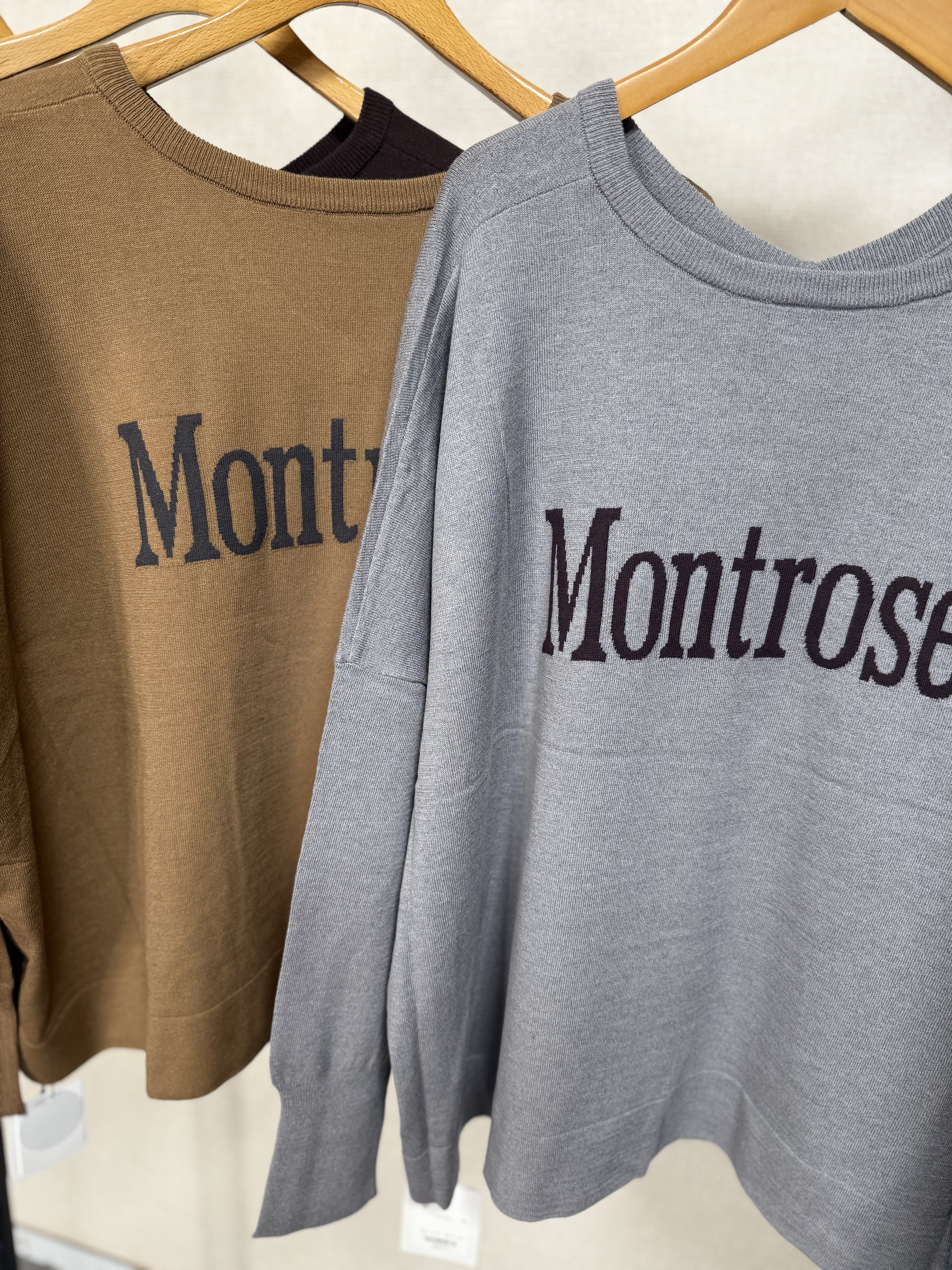 cloche グレーベージュラスト1点づつ 前後2way Vネックロゴニット 5548