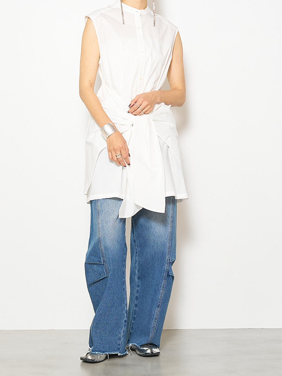 膝に入れたタックで作るユニークなシルエットが特徴のデニムパンツです。