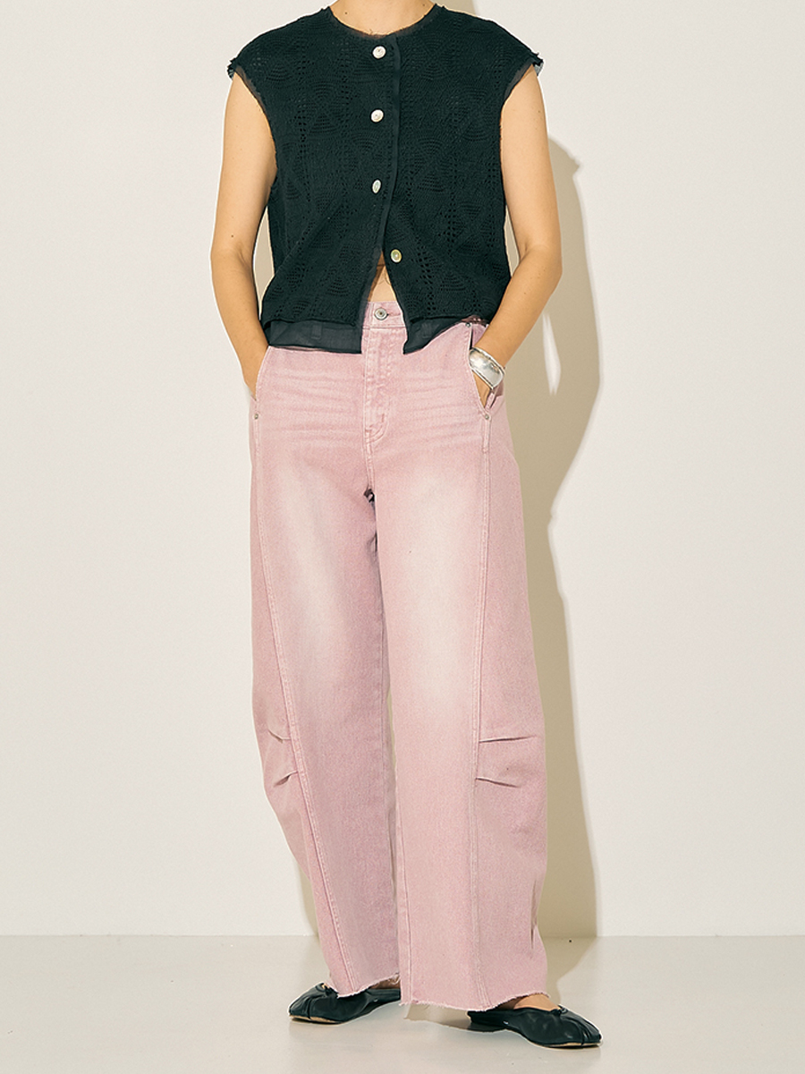 合わせる色を選ばない定番のデニムカラーと、製品染め+擦り加工で表現した絶妙なピンクカラーの2色展開です。