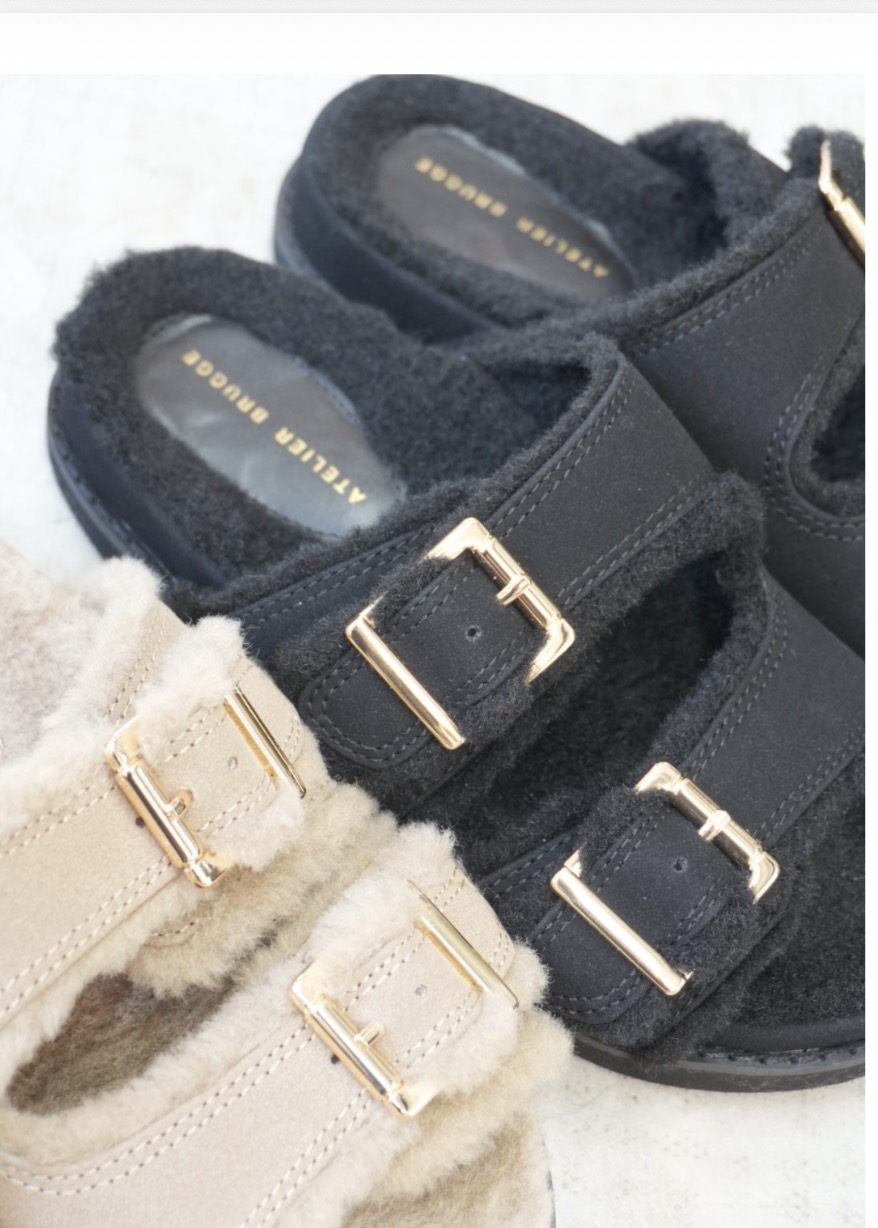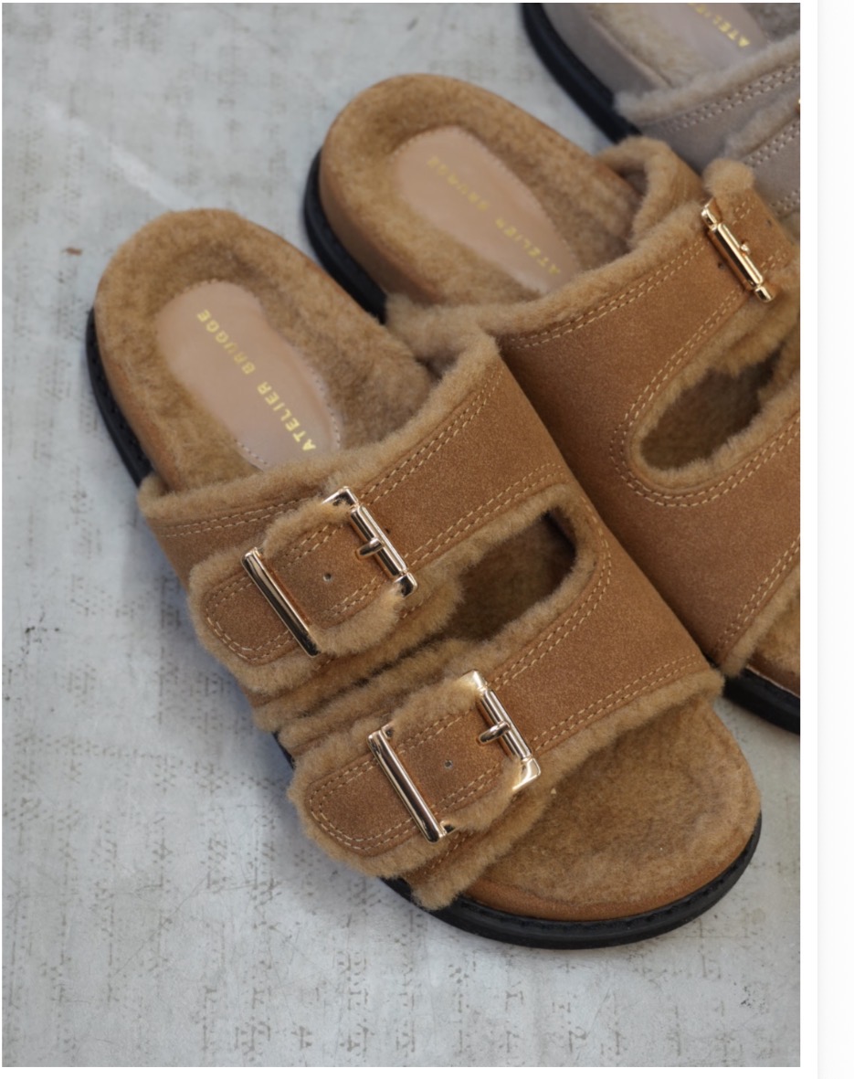 ATELIER BRUGGE ご予約 W buckle fur sandals 26KS-39 納期6月中旬~7月中旬