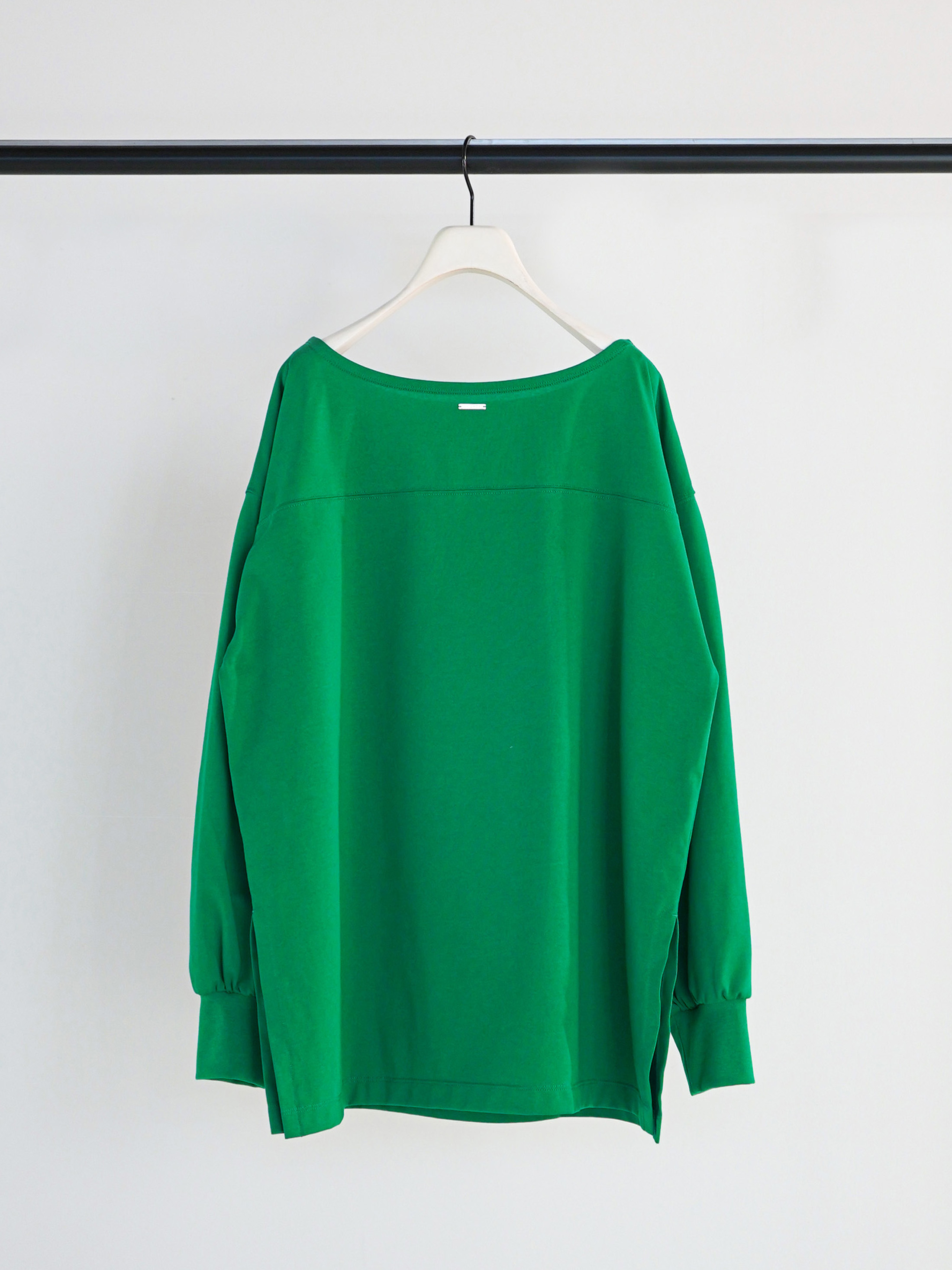 カジュアル過ぎないクリアな表面感の度詰天竺を使用した、大人の女性らしさを演出する抜け感あるロンTです。