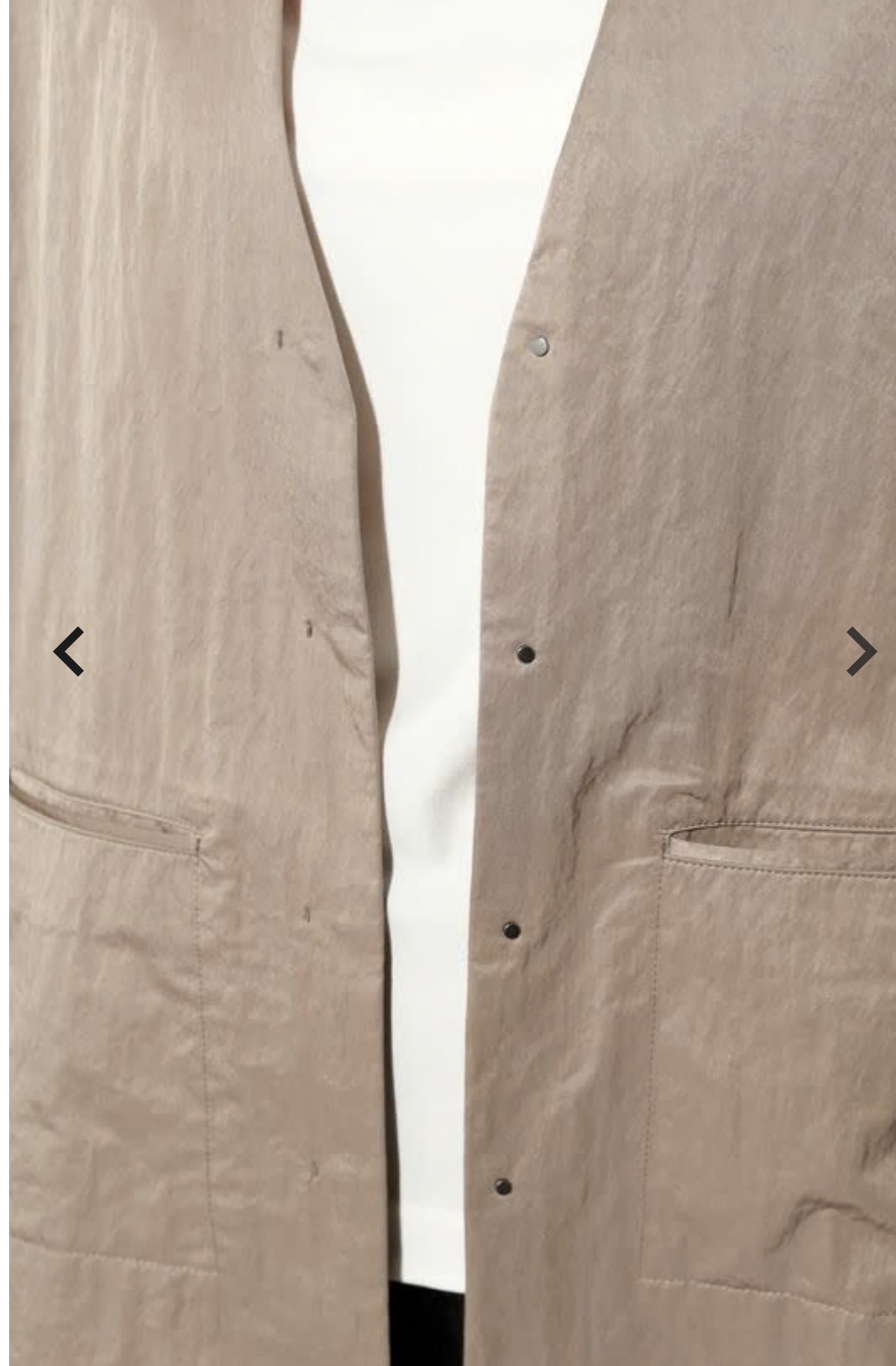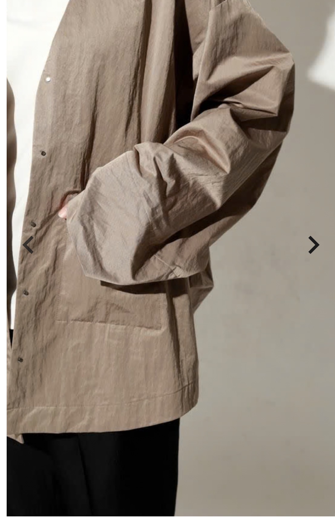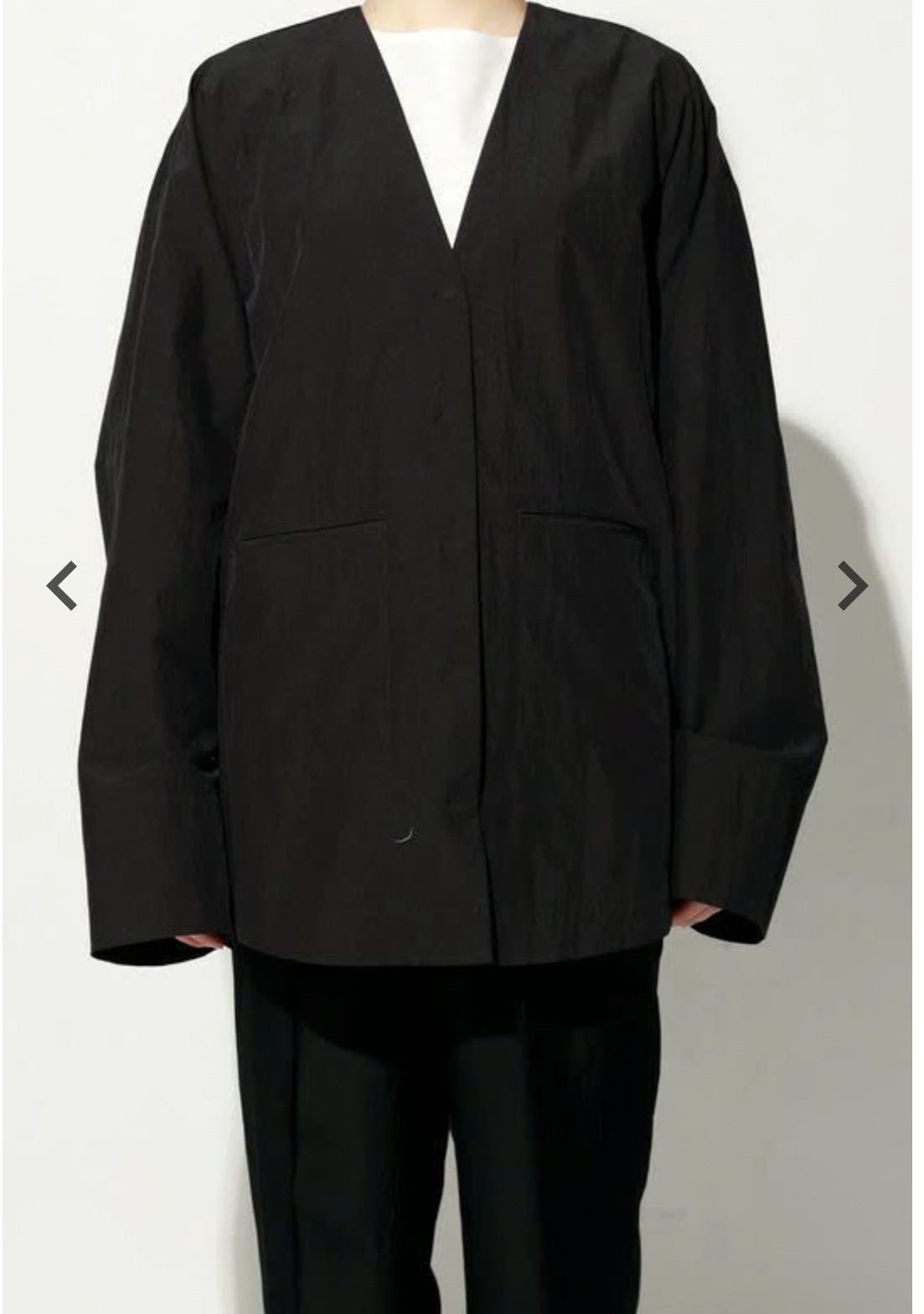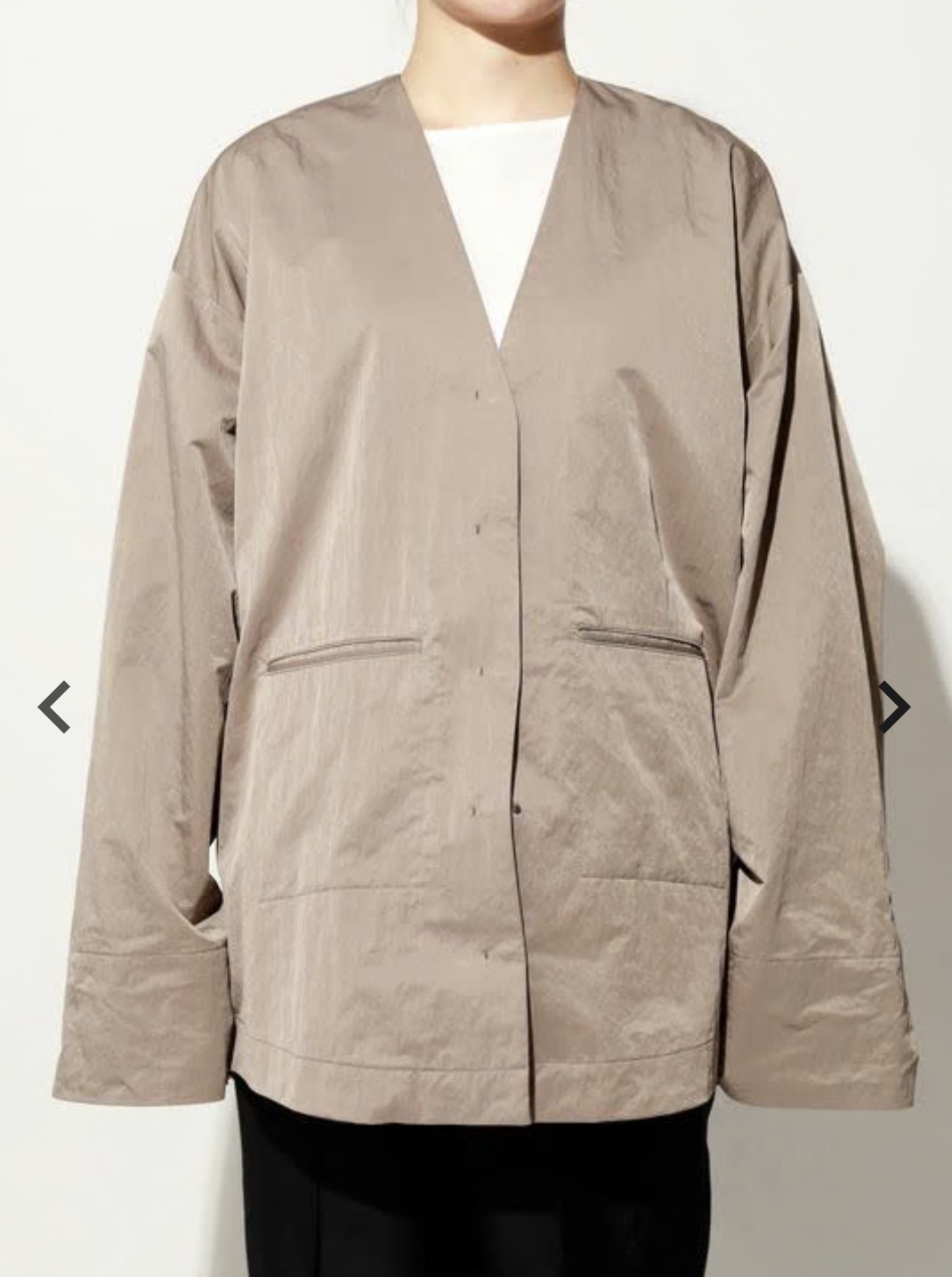 トレンド感のあるオーバーサイズシルエットのノーカラーブルゾン。パウダリータッチの滑らかさと、綿の持つ自然な風合いが絶妙にマッチし、新しい表情を生み出す一着。フロントは隠しドットボタン仕様で、無駄をそぎ落としたミニマルなデザインが特徴。