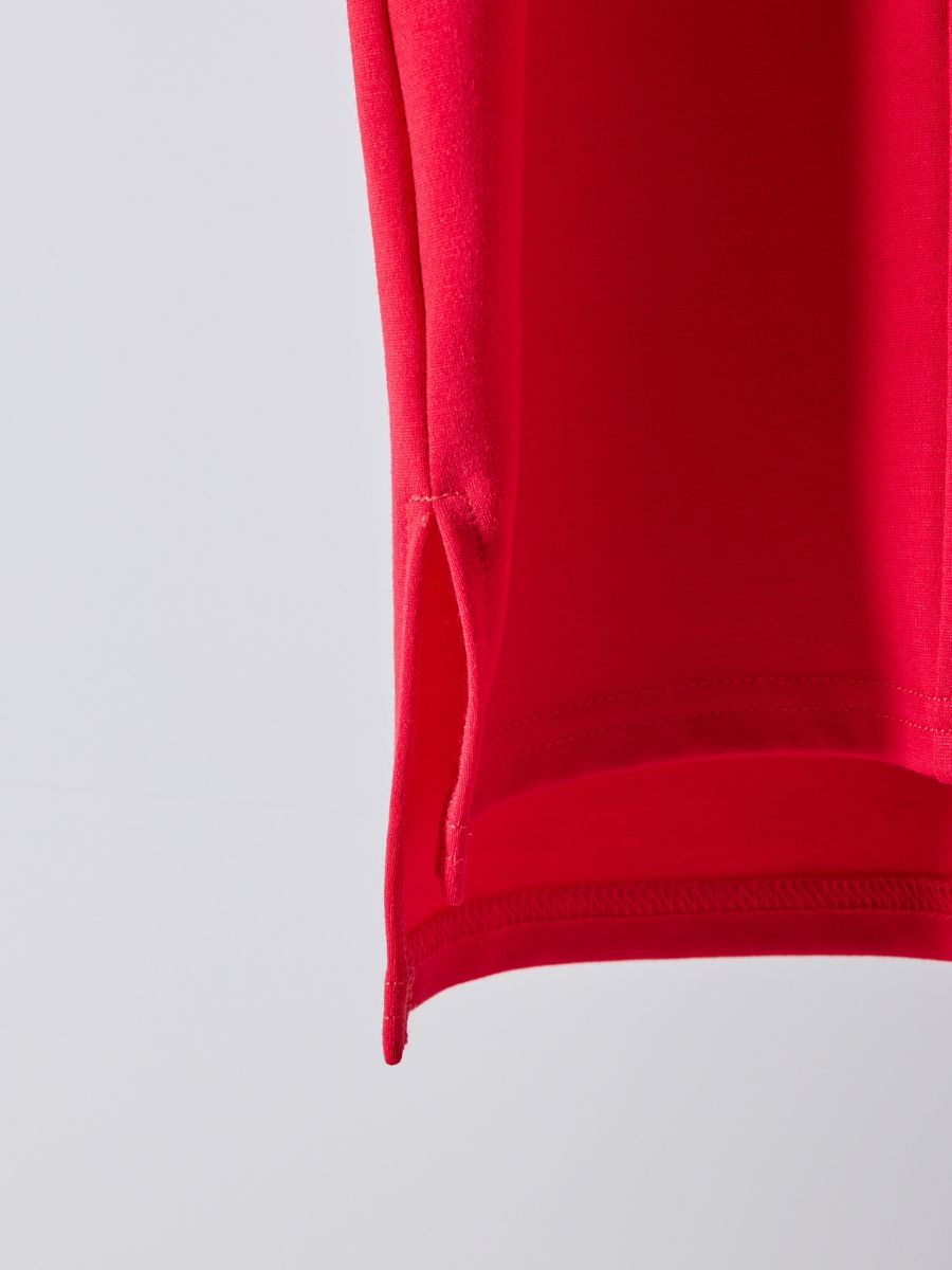 まるでハートを描くようにカーブを描いたネックラインが印象的なポンチ素材のカットソー。