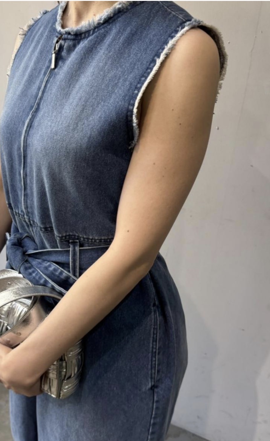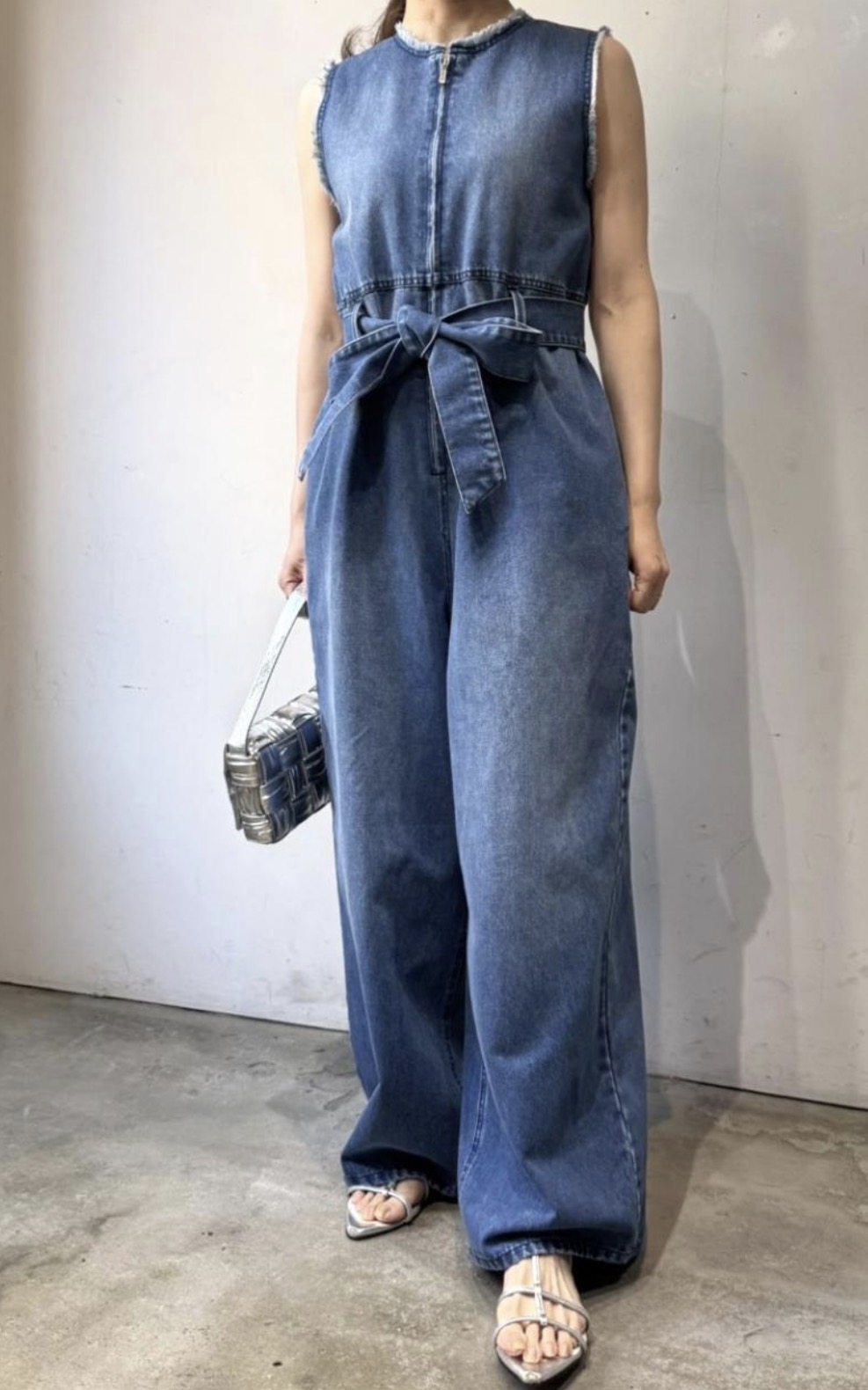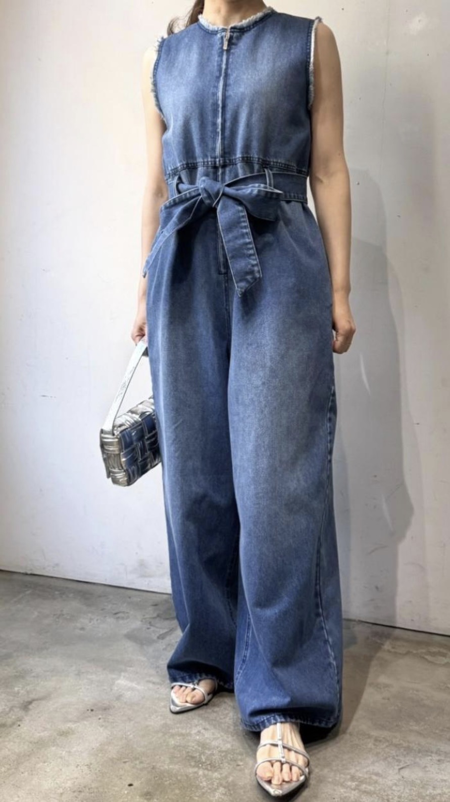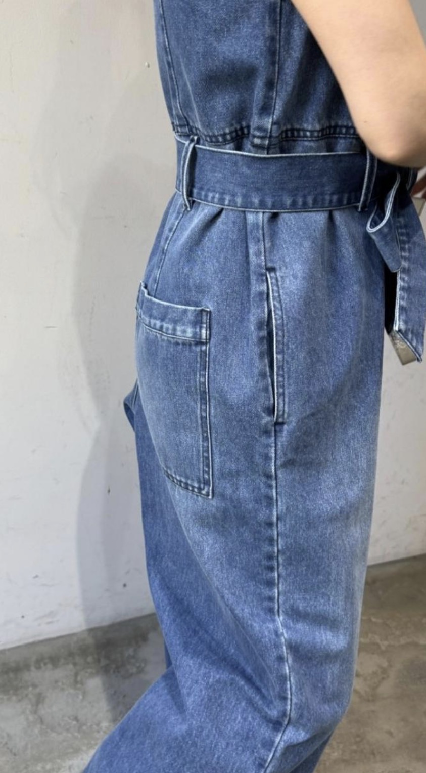 ブルー予約 フロントZIPデニムコンビネゾン a96