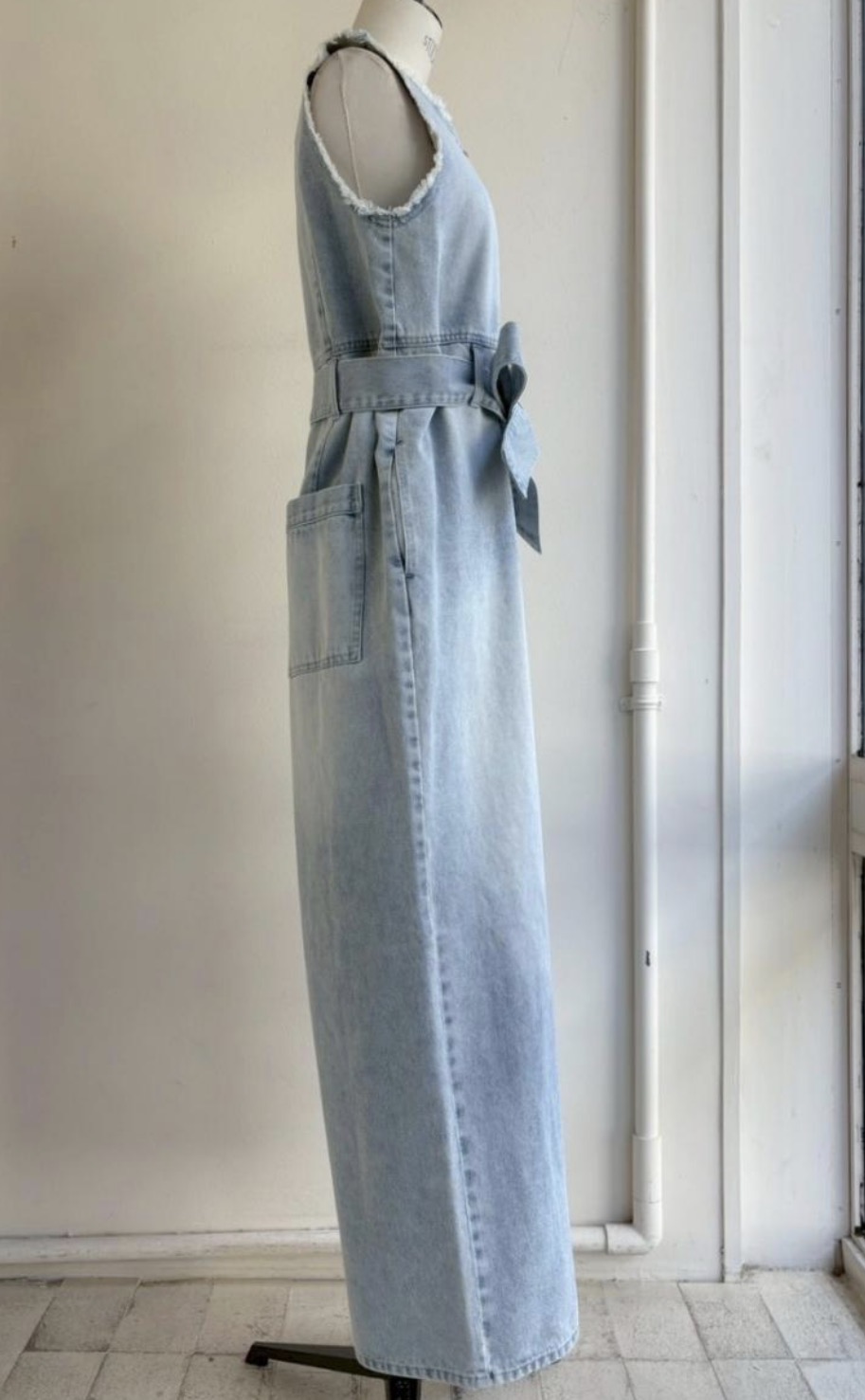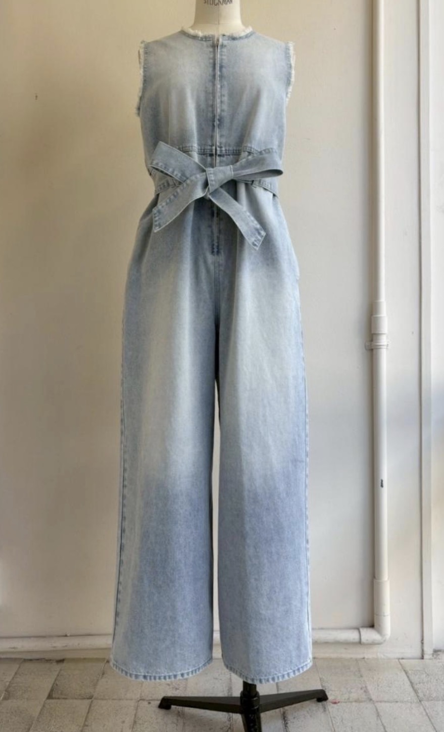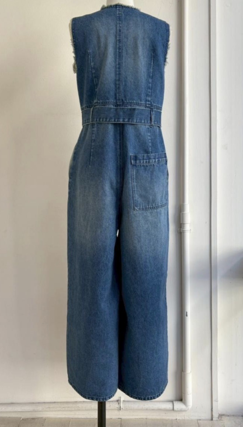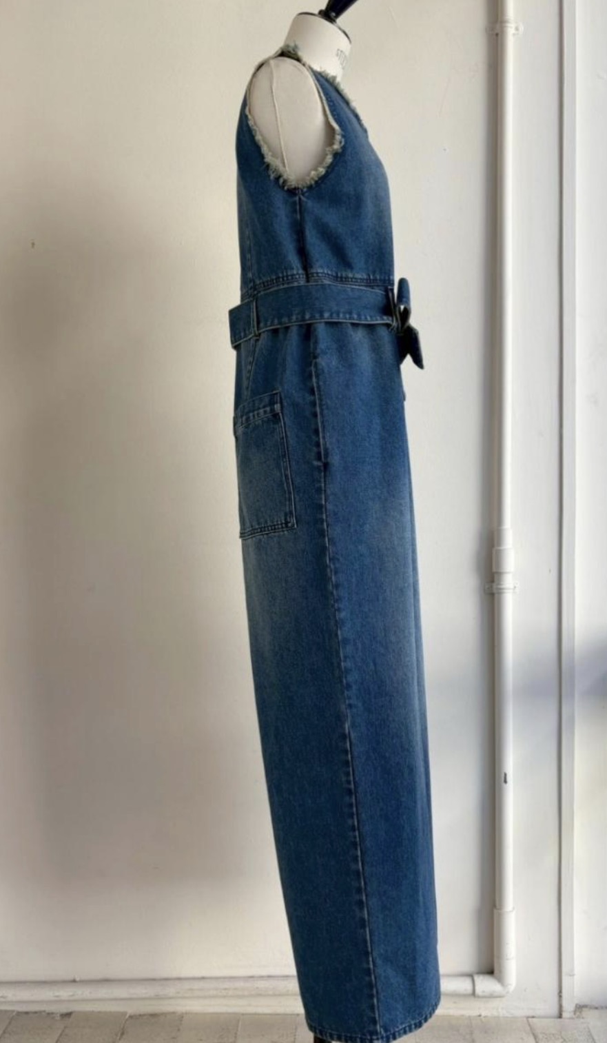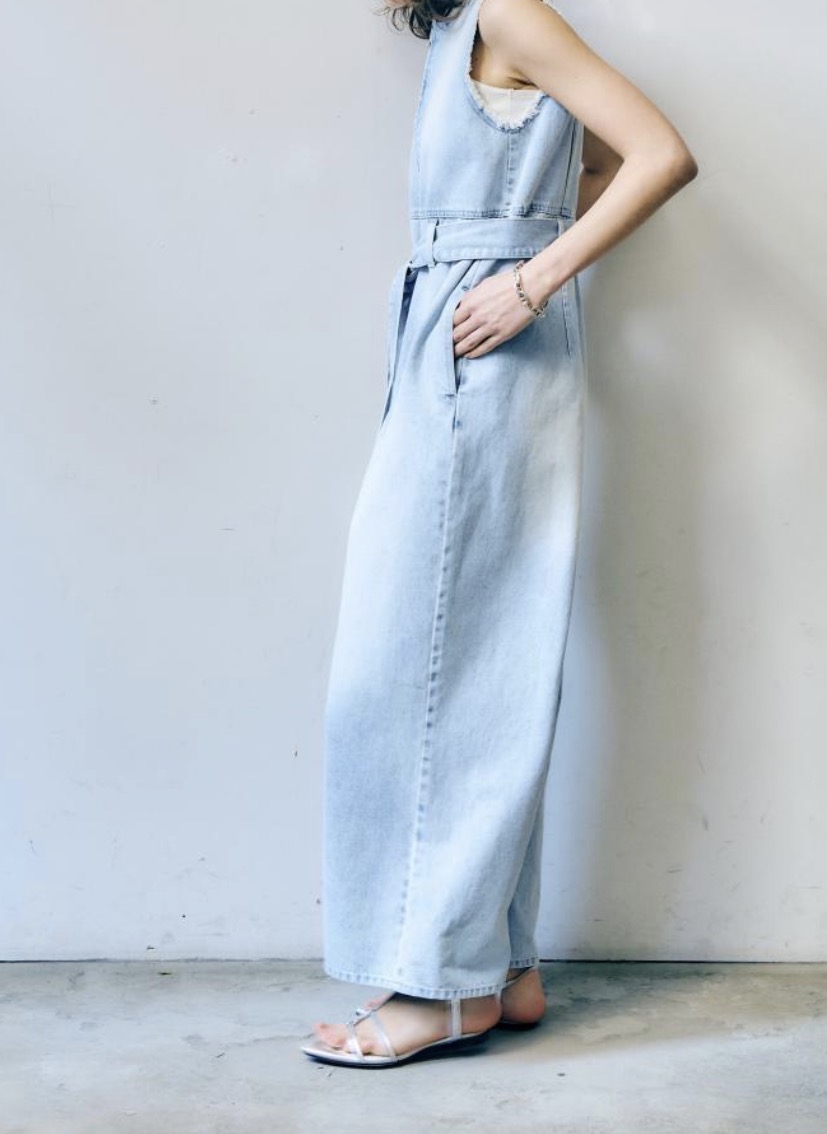ブルー予約 フロントZIPデニムコンビネゾン a96