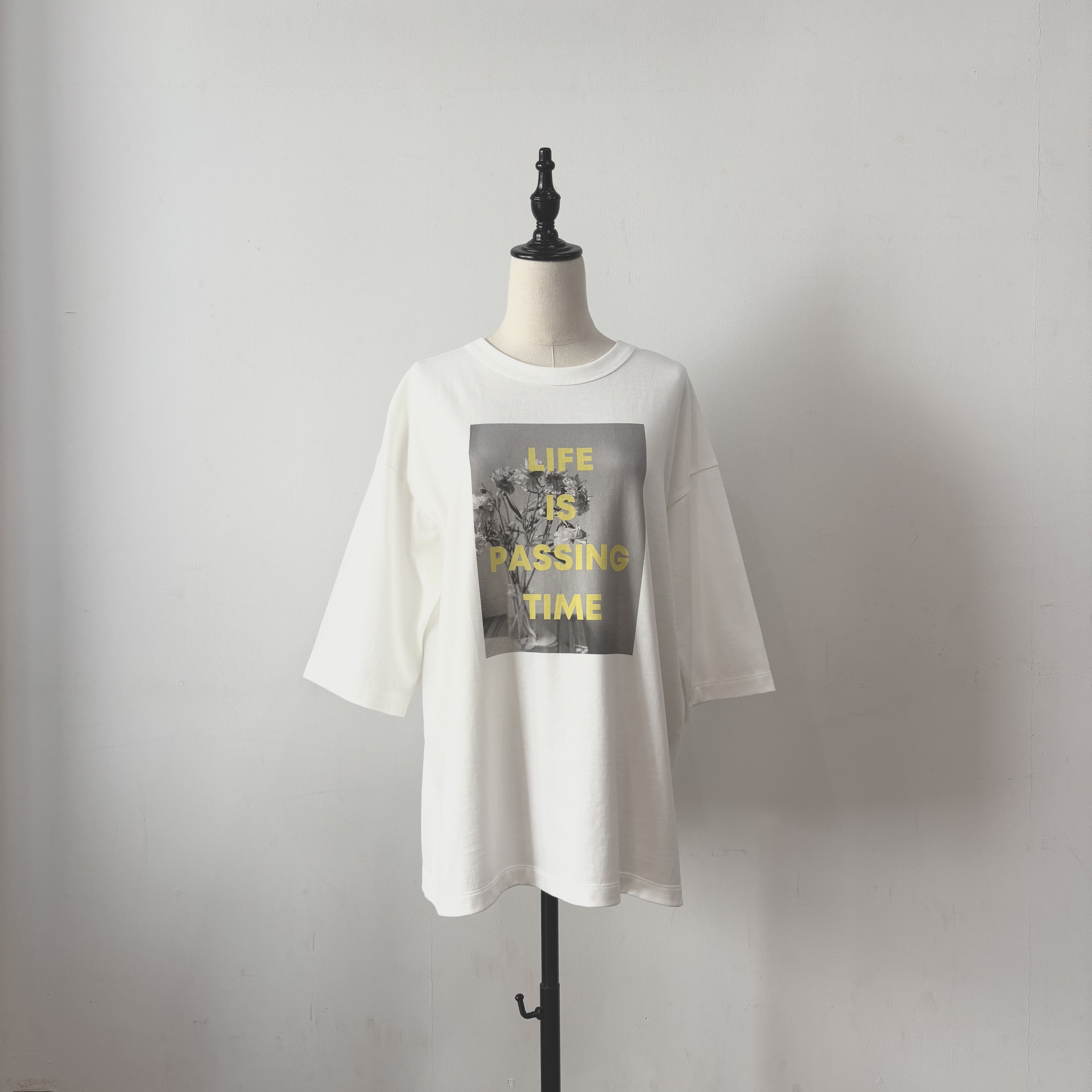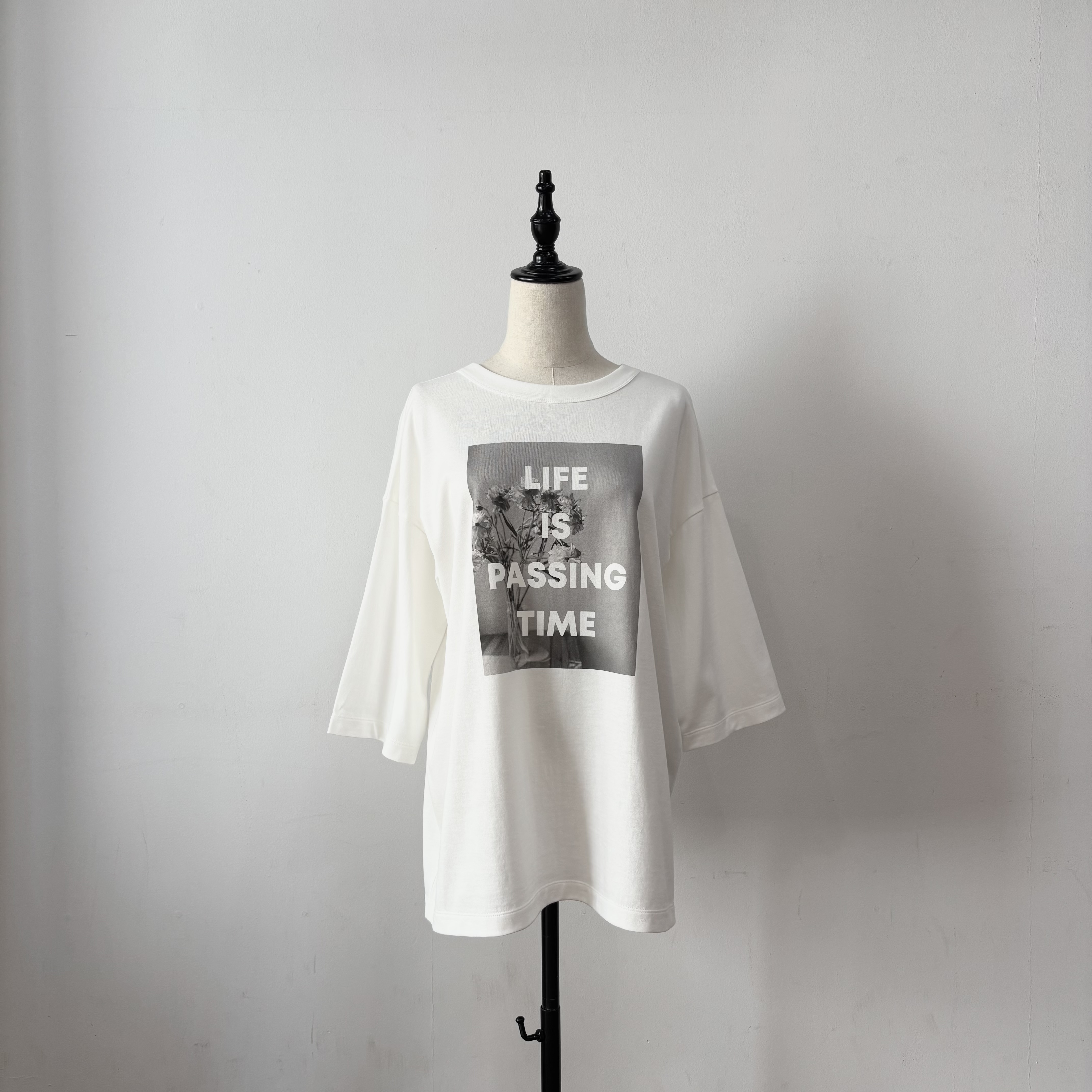ややゆったりめなシルエットと程よく開いたネックラインが特徴の前後2way着用が可能なTシャツ。