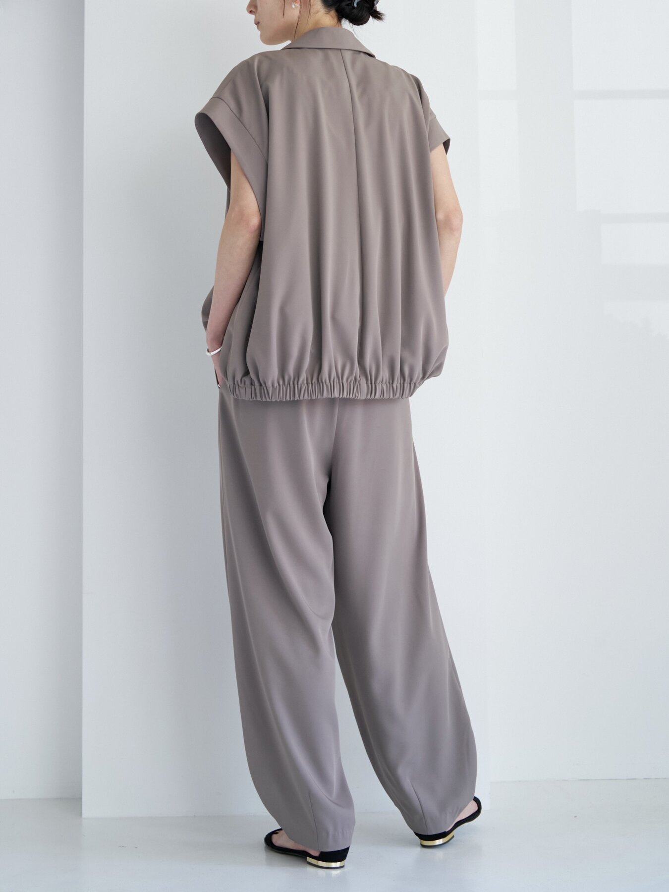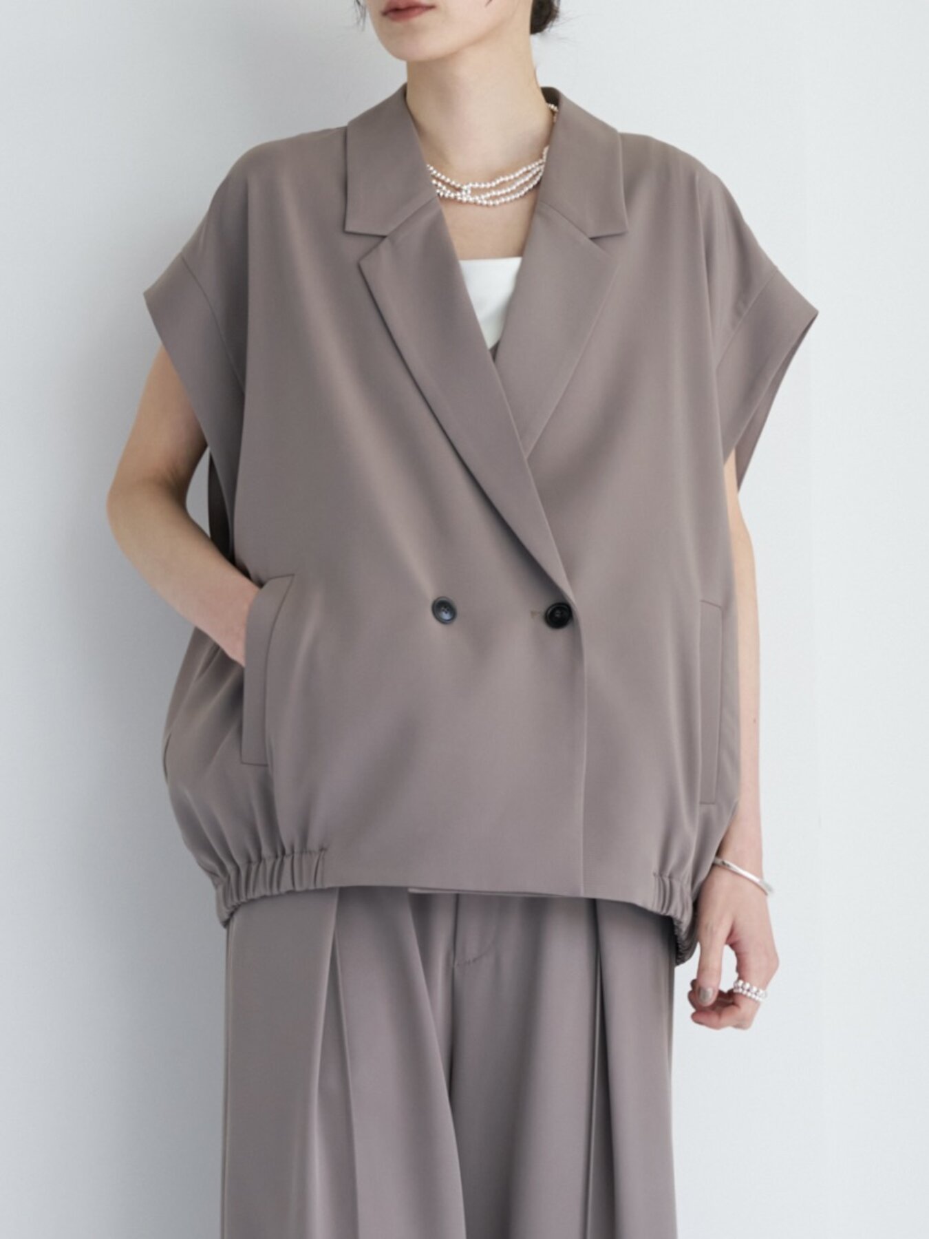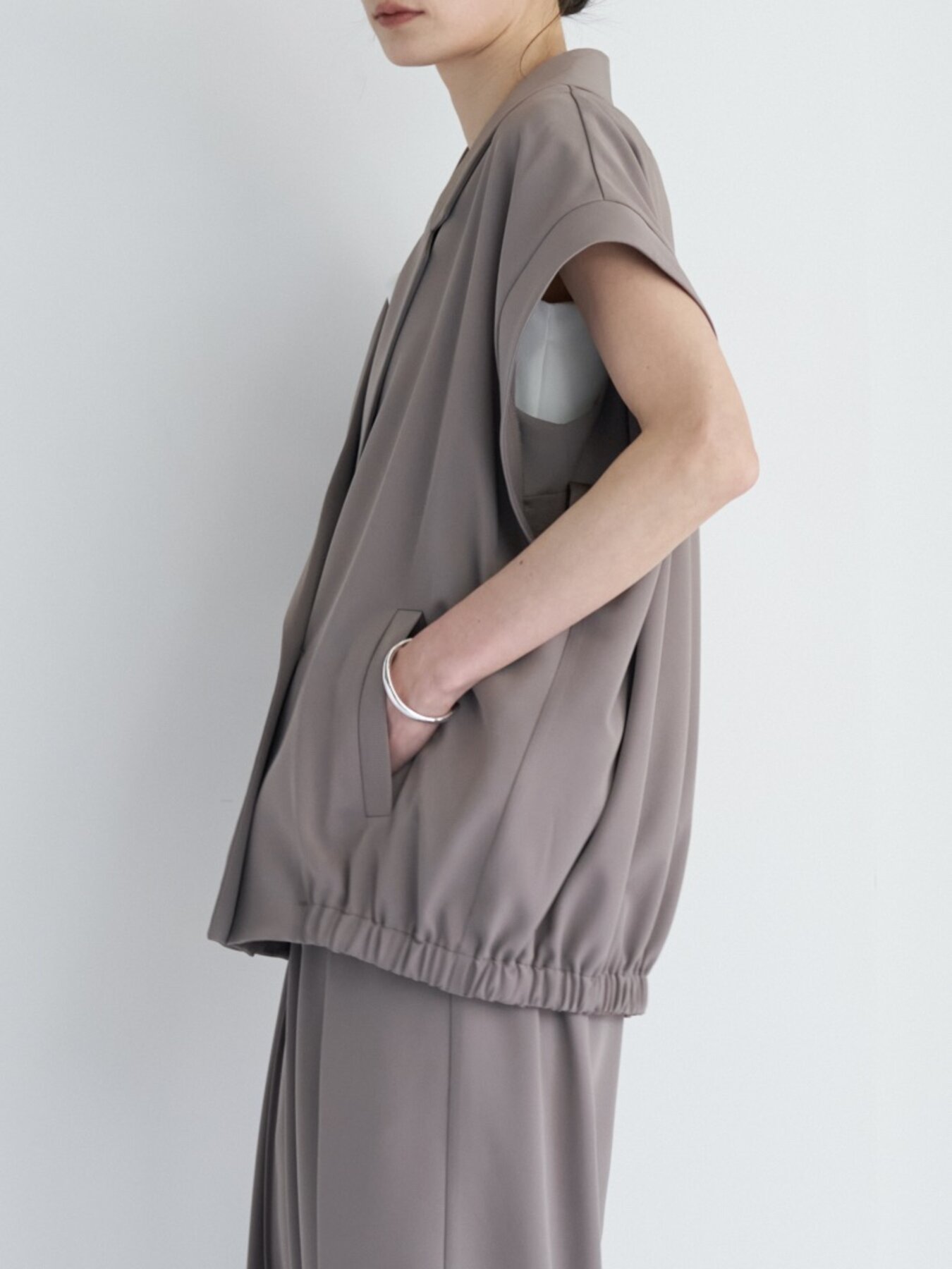 テーラードのきちんと感とブルゾンライクな丸みを掛け合わせたニュアンスジレ。