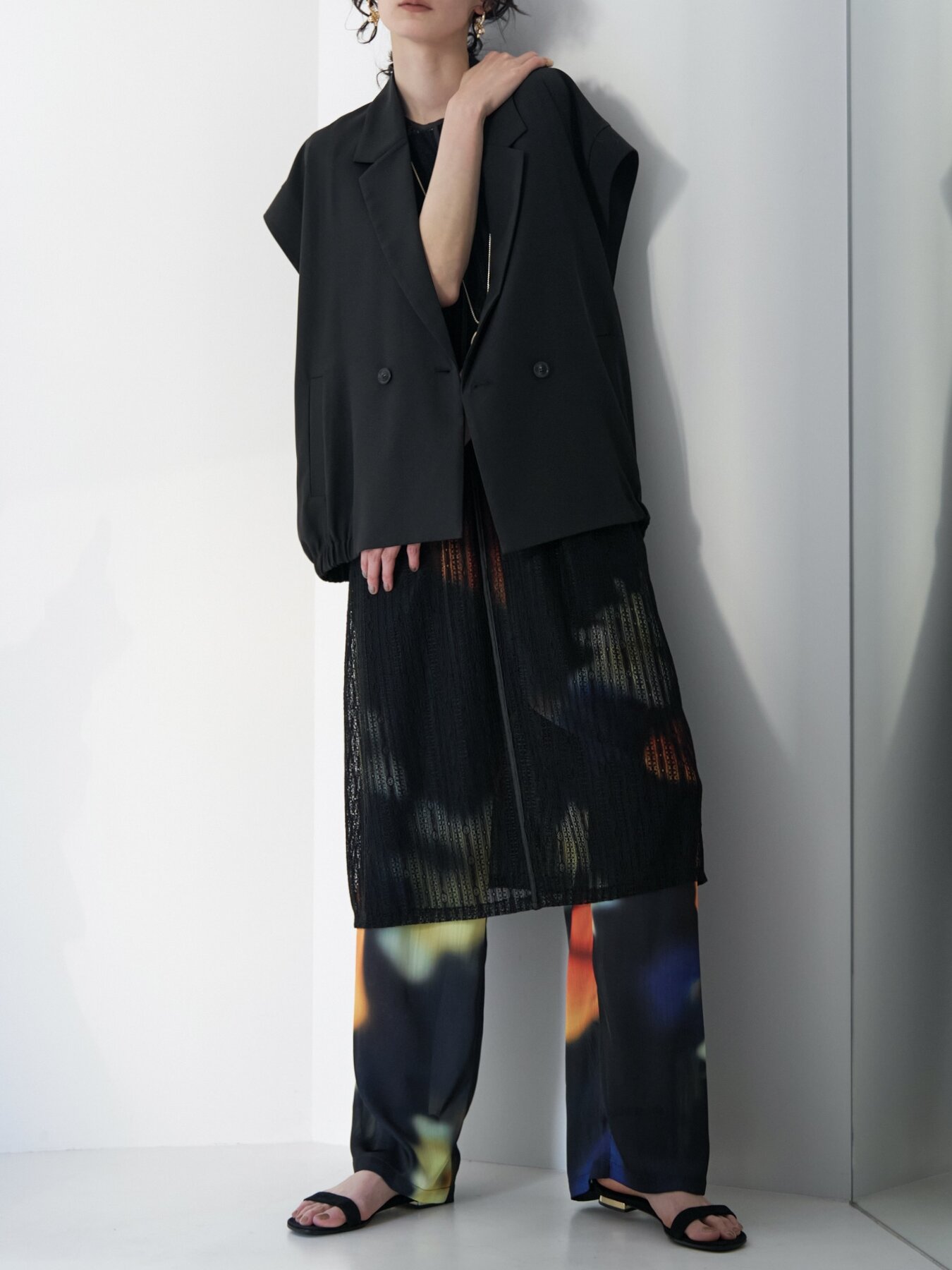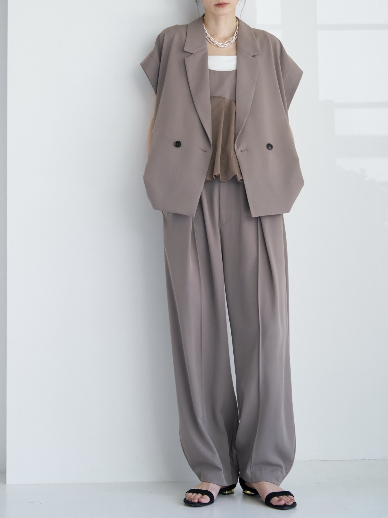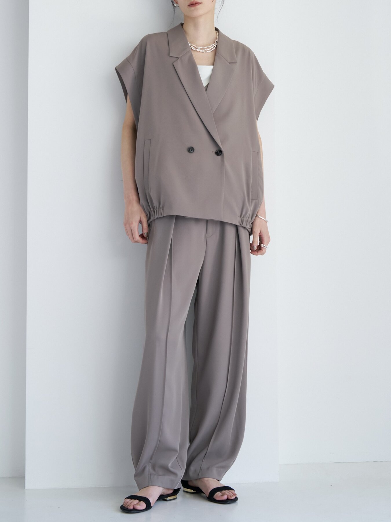 ジレとビスチェ、ジレとパンツ、フルセットなど、気分に合わせてお好みのセットアップスタイルをお楽しみいただけます。
