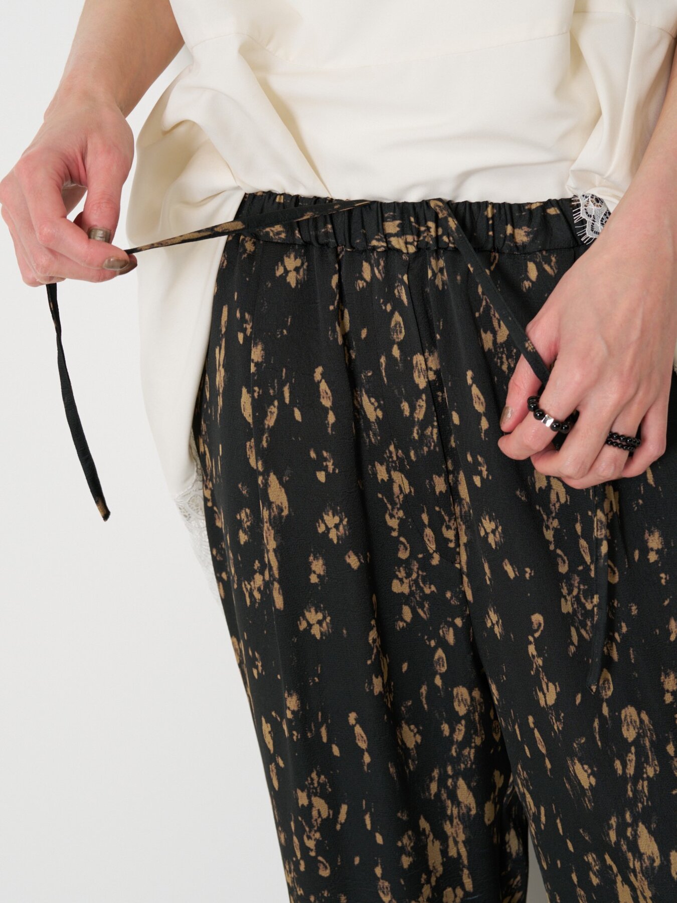 落ち感のあるポリエステル素材を使用した、大人なレオパード柄のイージーストレートパンツ。上品で落ち着いた柄が、スタイリングに程よいアクセントをプラスします。