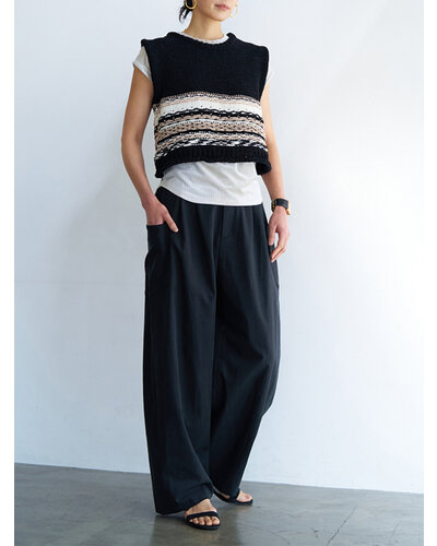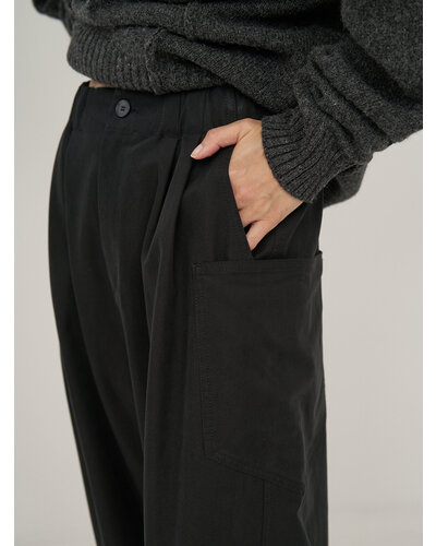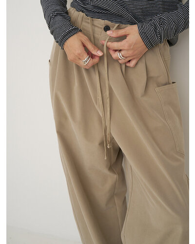 たっぷりとボリュームをとったメンズライクなデザインパンツ。