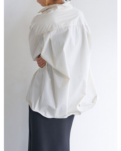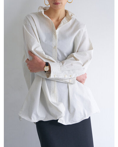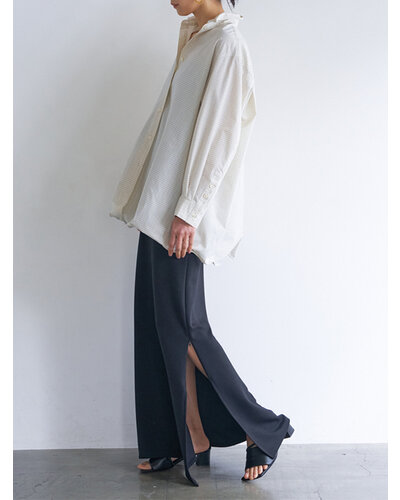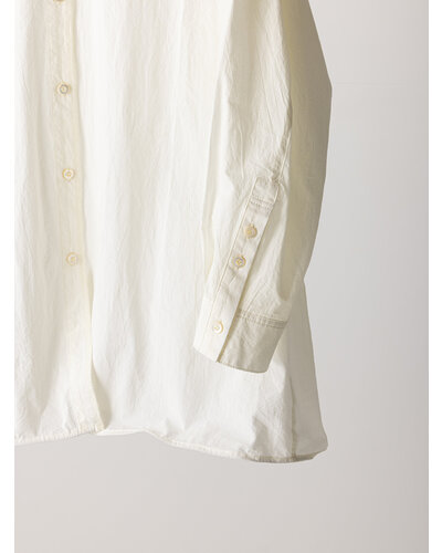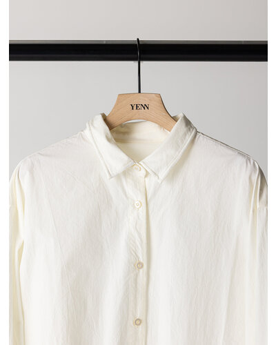 衿と裾に施したワイヤーで作る立体感のあるシルエットが特徴のオーバーシャツです。