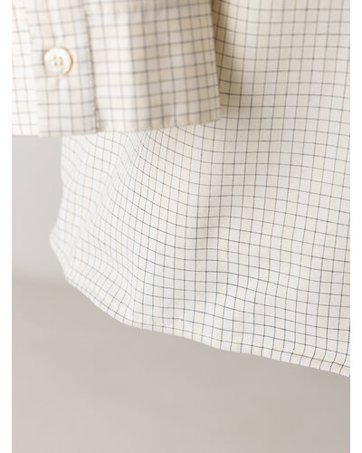 無地の2色は洗い加工入りの綿100%の生地を使用。洗いざらしのカジュアルな風合いの素材です。 チェック柄は方眼紙のような細かい格子柄を採用。シンプルでクリーンな柄ですが、ほのかに微配色のラインが入っているのがポイントです。