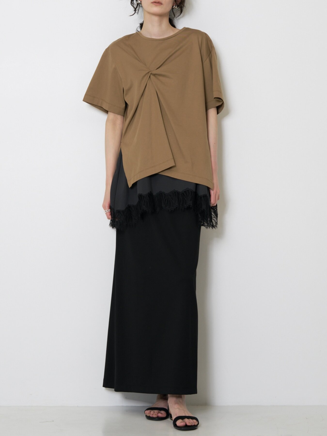 裾のアシンメトリーなカッティングが動きを生み、レイヤードスタイルにもおすすめ。
