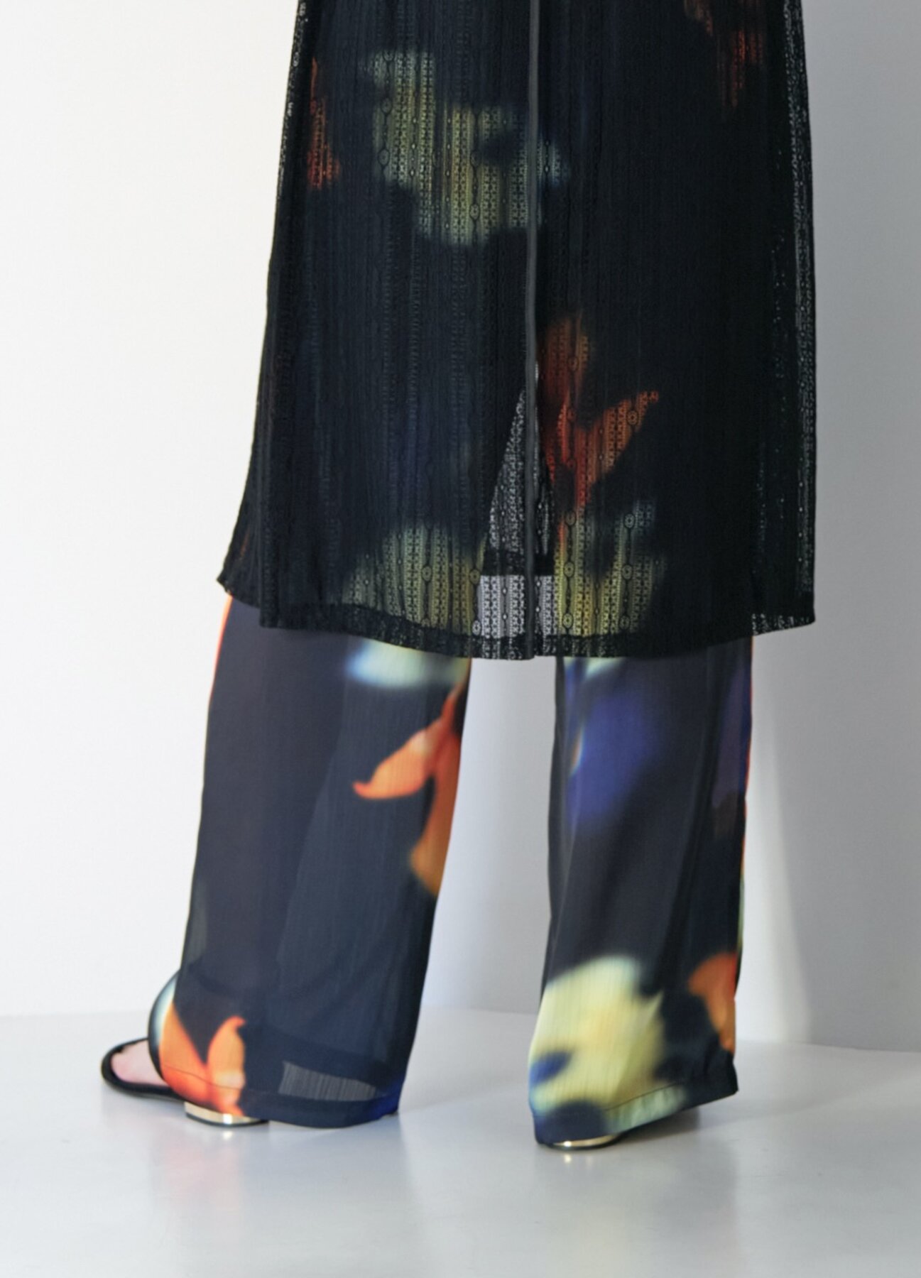 トップスの下に重ねると、レーススカートをレイヤードしているようにもアレンジが可能。