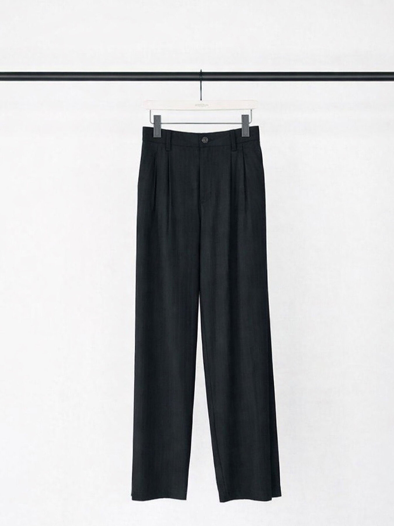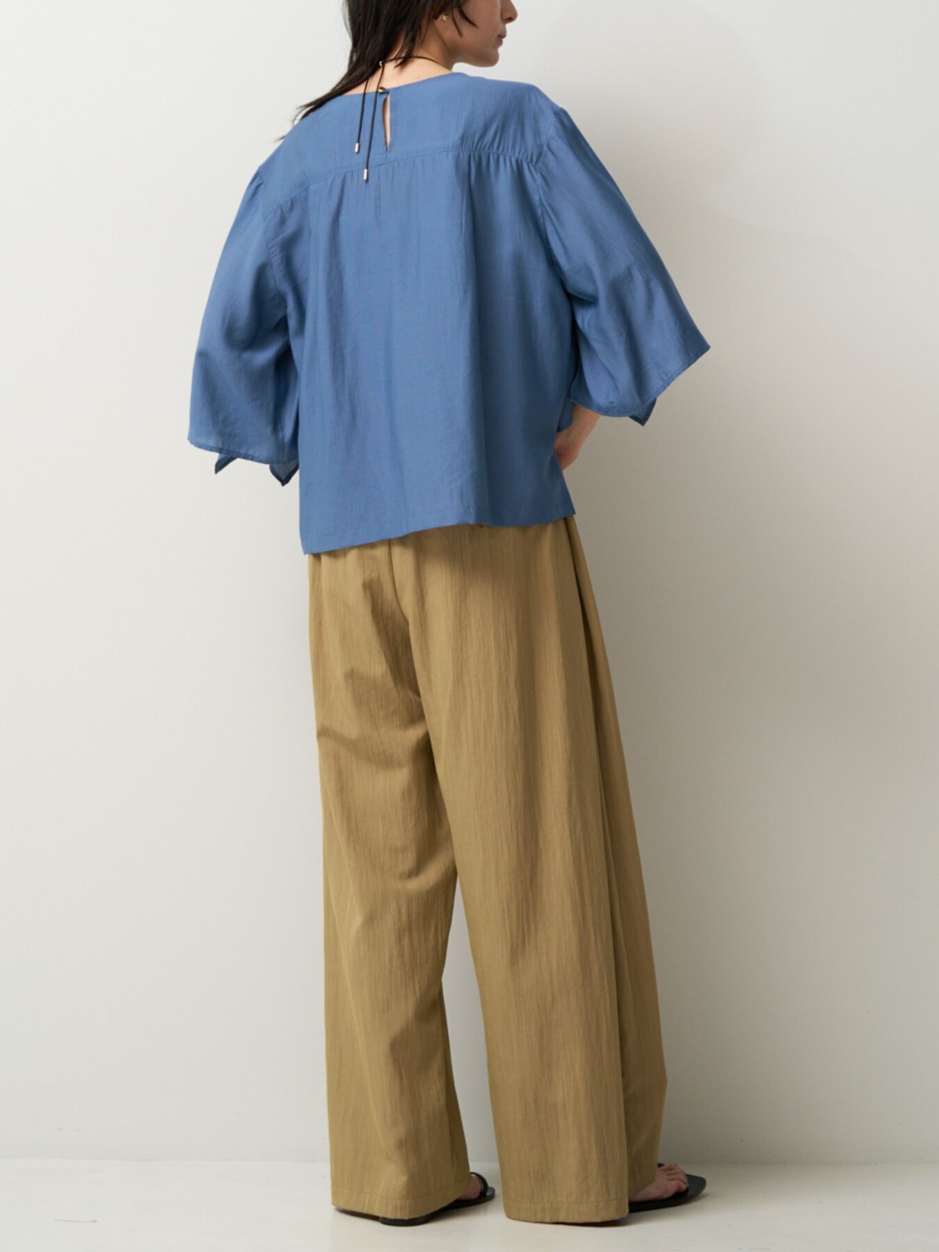 落ち感のあるポリエステルレーヨン素材を使用した、サイドタックがポイントのワイドパンツ。しなやかなドレープ感があり、動きのある美しいシルエットを演出します。